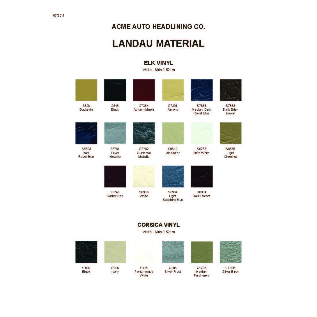This Landau Top set is a high-quality product following the factory design. Top deck has one Center French stitched seam down center of roof and seam around rear window. All patterns are fitted, not universal, and have been in continual use since each vehicle model was built. Seams are heat sealed to prevent leakage and rust.