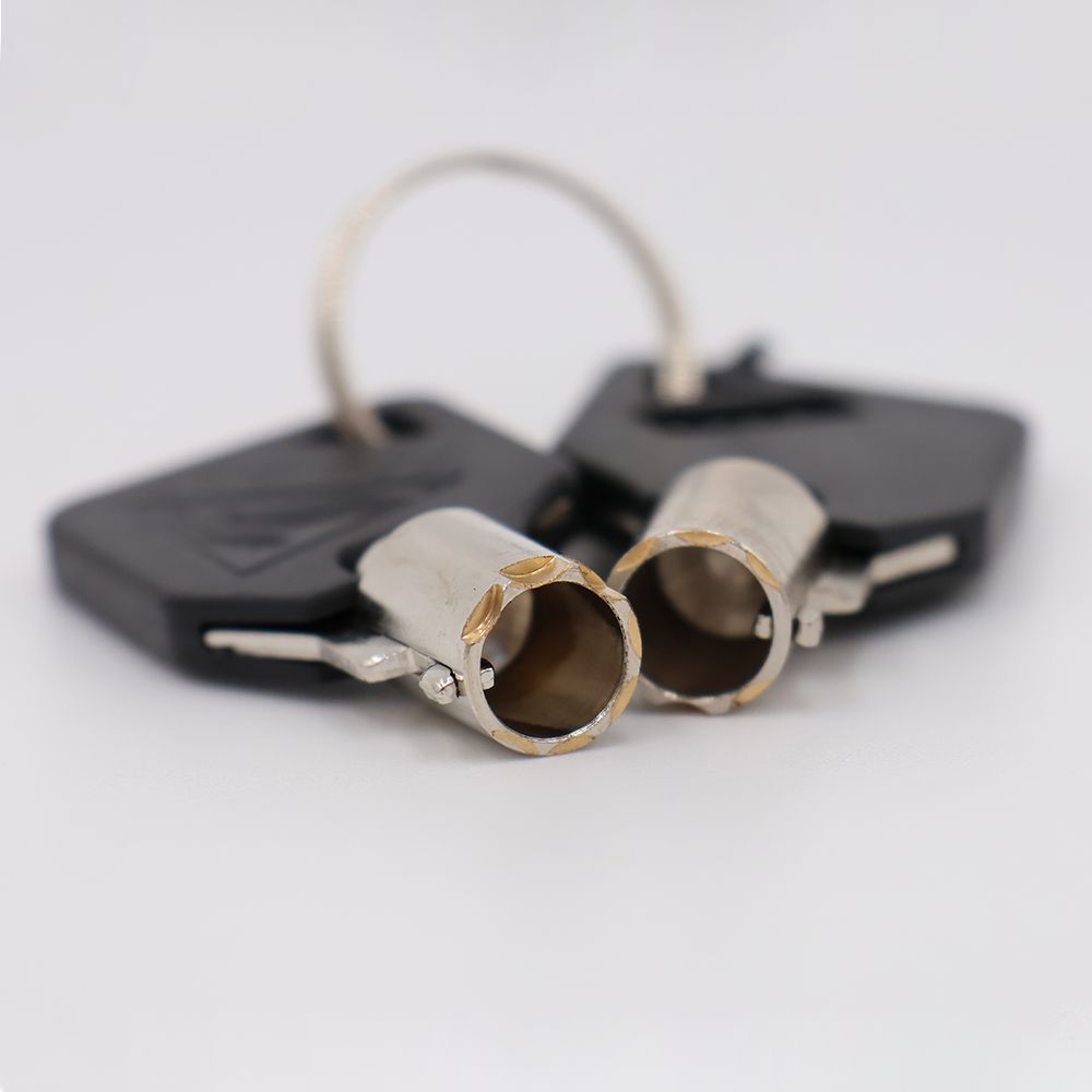 Secure your Blue Ox tow bar to the base plates on your towed vehicle with these 1/2 in. diameter, deadbolt-style locks. A 5/8 in. diameter receiver lock is also included to secure the tow bar to your RVs hitch. Receiver lock secures motor-home-mounted tow bar to RVs trailer hitch receiver.