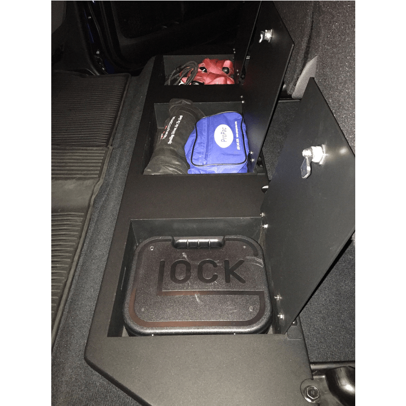 High quality heavy duty under seat lockable storage 3 part organizer allows plenty of space to lock up and hide your valuables under your back seat. No seat interference to your back seat, no road noise, and only adds 20lbs to your truck.
