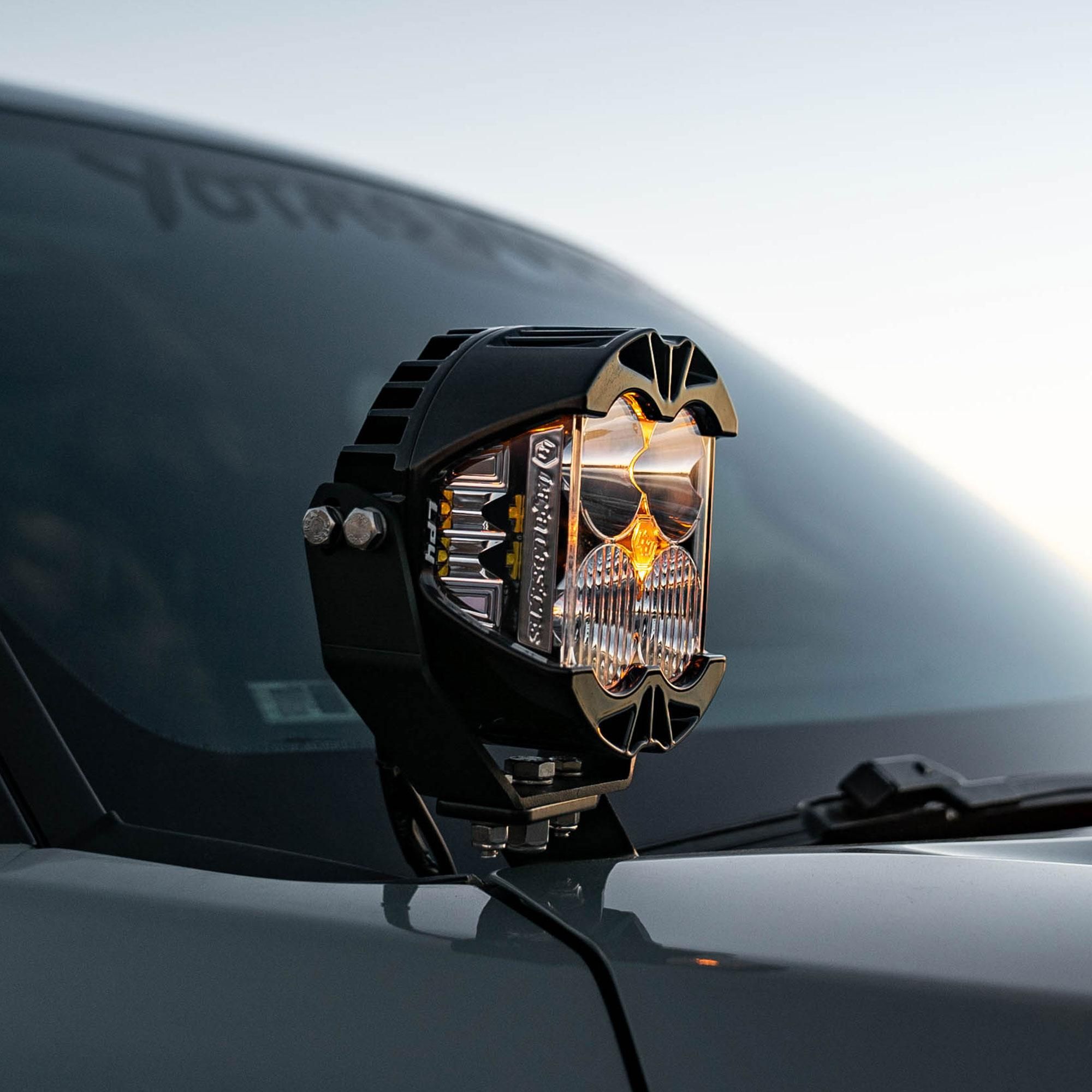 The Baja Designs LP4 Pro A-Pillar LED light kit for the 2025 Toyota 4Runner is for enthusiasts that need more visibility at night while on the trails. This comprehensive two-light kit has been expertly designed with a set of lights that complement the lines of the new 4Runner. Mounting brackets, toggle harness and all essential components come standard in the kit, ensuring a seamless installation process. The LP4 Pro offers 8,857 total raw lumens per light, with 1,972 raw lumens of dedicated peripheral lighting courtesy of our patented Integrated Peripheral Technology (IPT) providing 200-degree spread of light that illuminates zones 1, 2 and 3 along with reaching into zone 4 spot. To keep your light performing at its highest level, the LP4 integrates our proprietary Direct Ducted Cooling (DDC) technology that allows air to travel through the front of the housing and over the rear heat sinks – drastically improving cooling capacity and performance. The larger reflector of the LP4 offers enthusiasts greater intensity, visibility and safety while on the trails. Our A-Pillar light kits offer additional illumination and an expanded field of view that helps see hazards or obstacles while on the trail. Experience the assurance of our 30-day satisfaction guarantee and lifetime limited warranty, providing unparalleled protection for your investment. Kit Includes: