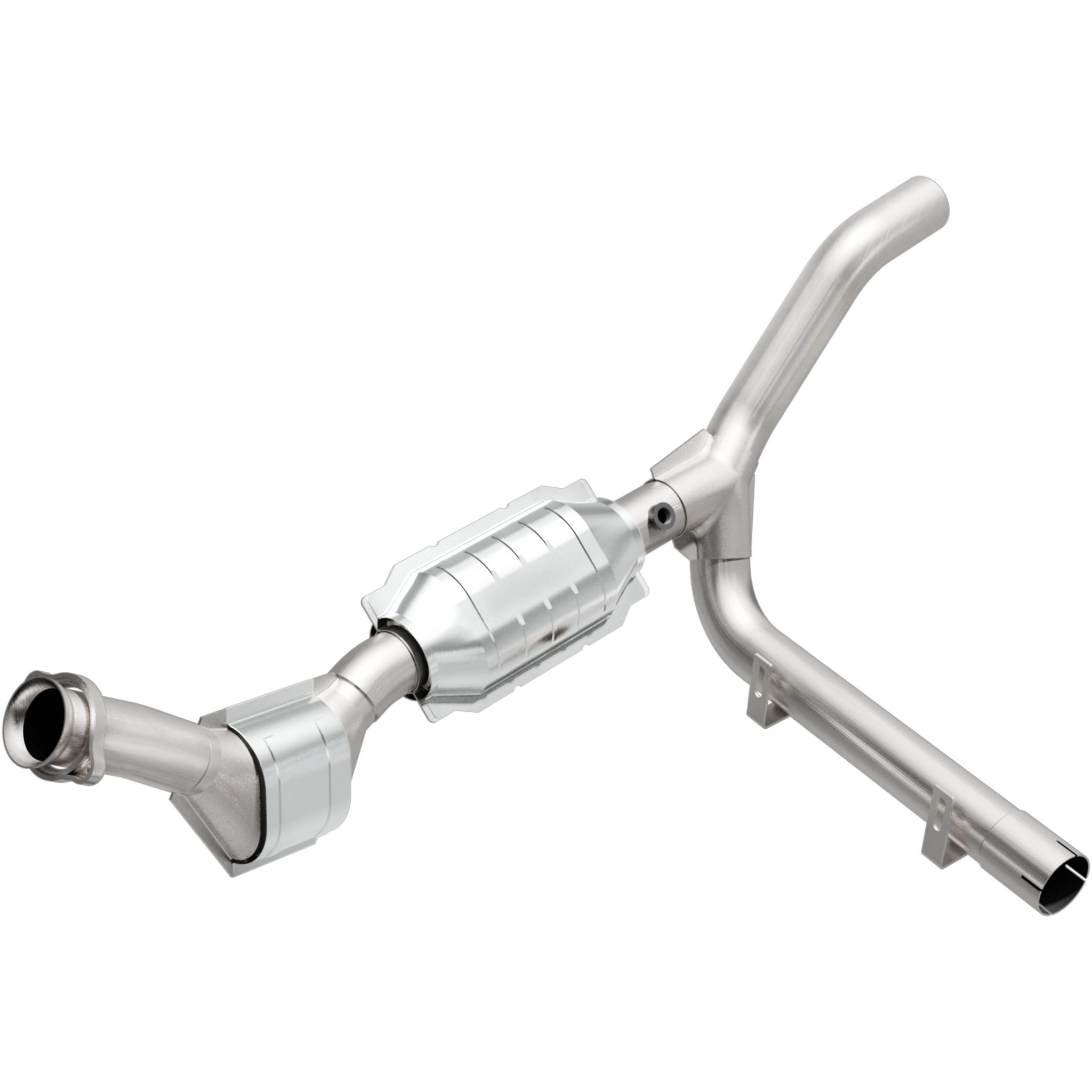 MagnaFlow HM Grade Federal/EPA Compliant Direct-Fit Catalytic Converter 93429 helps keep the check engine light off. DIY installation is easy with the proper tools (no cutting or welding required). With features including mandrel-bent tubing to eliminate flow restrictions and stainless steel construction to resist corrosion, you can have confidence in the quality of this catalytic converter. Using state-of-the-art 3D scanning systems in the design process, the MagnaFlow metrology department ensures this new part to fit and function like the original equipment. This direct-fit catalytic converter is designed specifically for the 1997-1998 Ford F-150. This replacement part is designed to meet or exceed Federal emissions requirements set forth by the EPA, complying with legal standards for OBDII Federally registered vehicles with Federal/EPA Emission systems.
