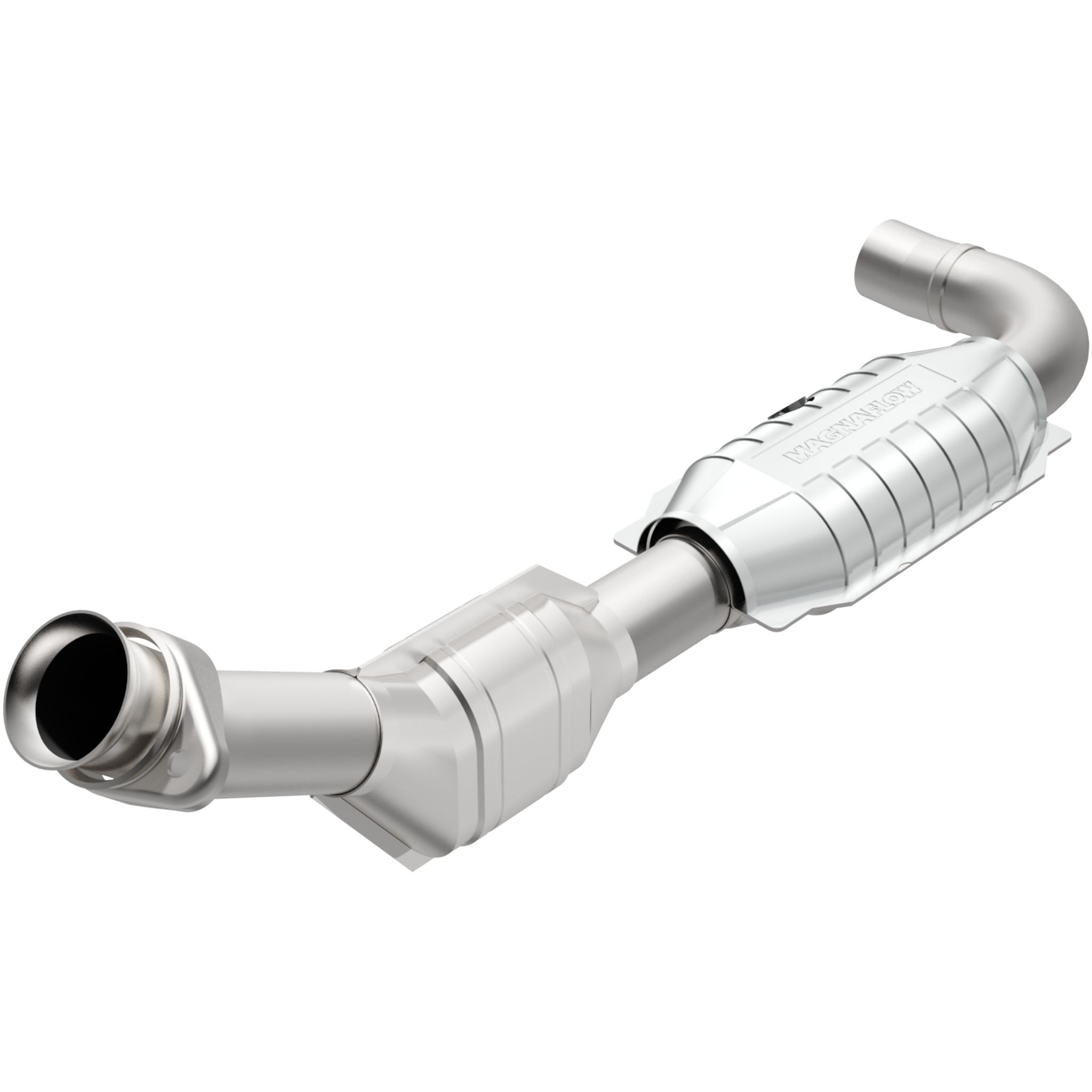MagnaFlow HM Grade Federal/EPA Compliant Direct-Fit Catalytic Converter 93392 helps keep the check engine light off. DIY installation is easy with the proper tools (no cutting or welding required). With features including mandrel-bent tubing to eliminate flow restrictions and stainless steel construction to resist corrosion, you can have confidence in the quality of this catalytic converter. Using state-of-the-art 3D scanning systems in the design process, the MagnaFlow metrology department ensures this new part to fit and function like the original equipment. This direct-fit catalytic converter is designed specifically for the 1999-2000 Ford F-150. This replacement part is designed to meet or exceed Federal emissions requirements set forth by the EPA, complying with legal standards for OBDII Federally registered vehicles with Federal/EPA Emission systems.
