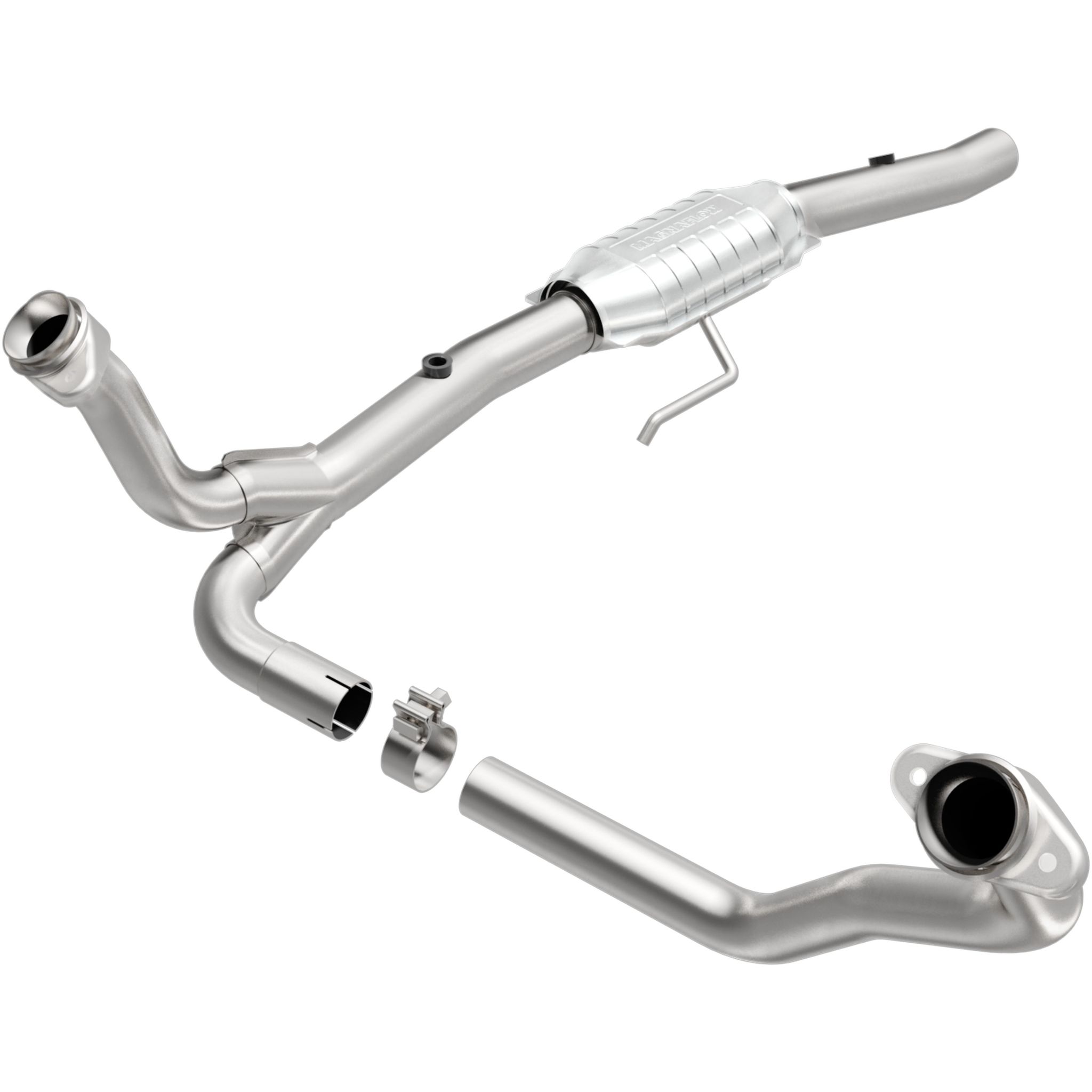 MagnaFlow HM Grade Federal/EPA Compliant Direct-Fit Catalytic Converter 93212 helps keep the check engine light off. DIY installation is easy with the proper tools (no cutting or welding required). With features including mandrel-bent tubing to eliminate flow restrictions and stainless steel construction to resist corrosion, you can have confidence in the quality of this catalytic converter. Using state-of-the-art 3D scanning systems in the design process, the MagnaFlow metrology department ensures this new part to fit and function like the original equipment. This direct-fit catalytic converter is designed specifically for the 2000-2003 Dodge Dakota and interchanges with OE parts 5210 3254AE and 5210 3254AA, among others. Hardware is included to eliminate the hassle of working with corroded factory parts. This replacement part is designed to meet or exceed Federal emissions requirements set forth by the EPA, complying with legal standards for OBDII Federally registered vehicles with Federal/EPA Emission systems.
