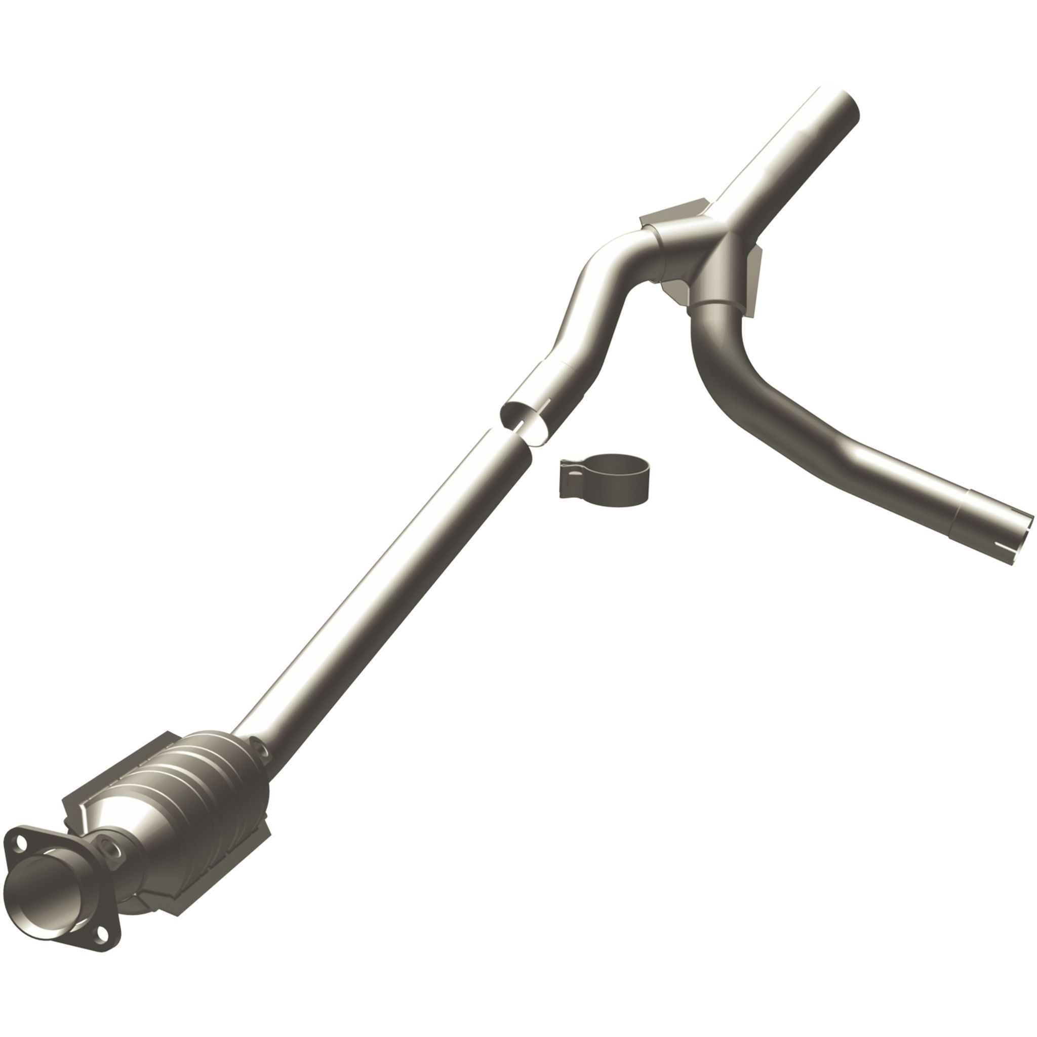 Keep the check engine light off with MagnaFlow OEM Grade Federal/EPA Compliant Direct-Fit Catalytic Converter 49610. With features including free-flowing mandrel-bent tubing and highly corrosion resistant stainless steel construction, easily install this spun body converter yourself using the proper tools, no cutting or welding required. MagnaFlow's state-of-the-art metrology department uses the latest 3D scanning systems during research and development, so you can be confident that your new part will fit and function like the original equipment. By replicating the OE spun body design, the single laser fusion weld greatly reduces the possibility of a leak, and our compact, low-mass design also allows for greater thermal efficiency. This direct-fit catalytic converter is designed specifically for the 2004-2005 Dodge Ram 1500. This replacement part is designed to meet or exceed Federal emissions requirements set forth by the EPA, complying with legal standards for OBDII Federally registered vehicles with California or Federal/EPA Emission systems.
