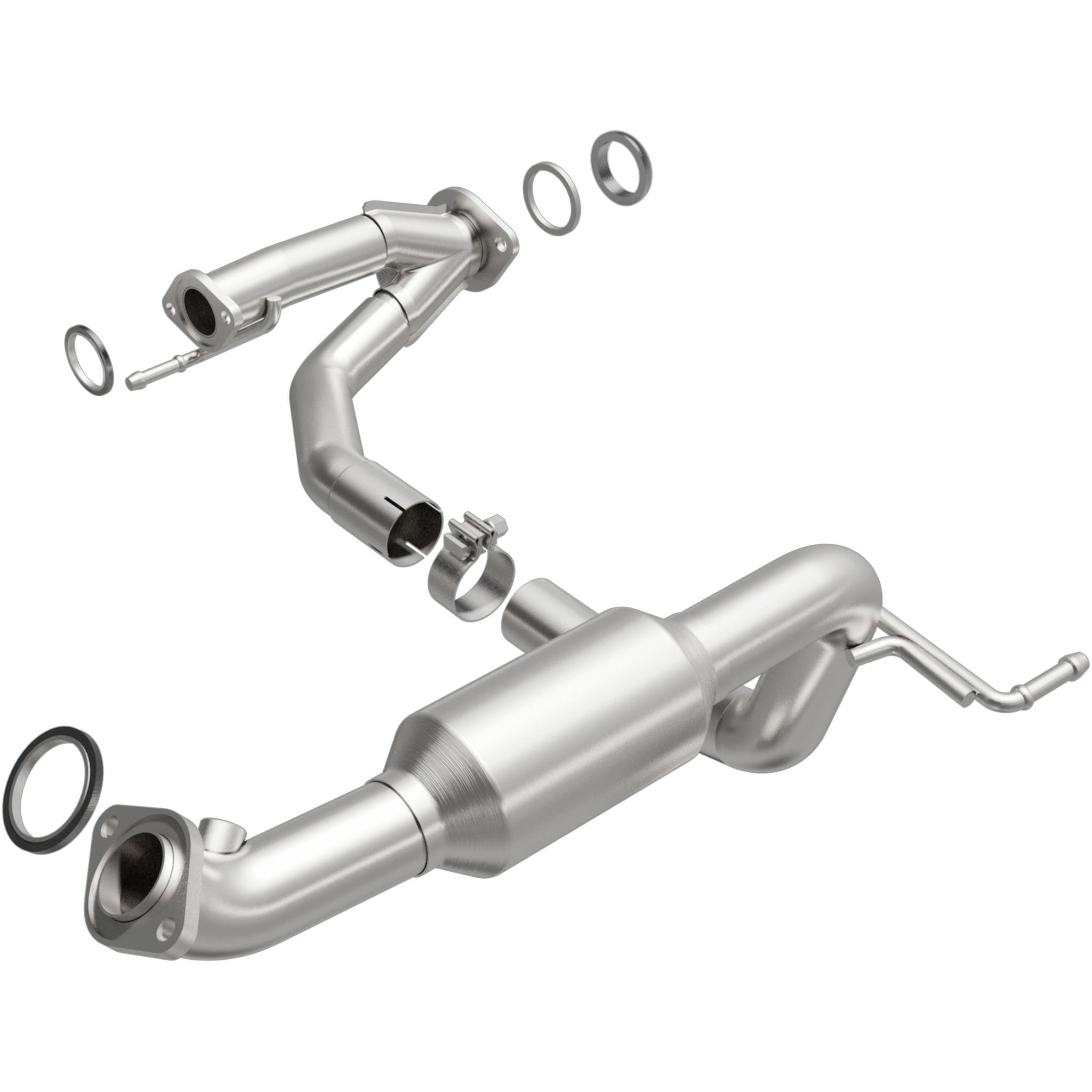 Keep the check engine light off with MagnaFlow OEM Grade Federal/EPA Compliant Direct-Fit Catalytic Converter 52562. With features including free-flowing mandrel-bent tubing and highly corrosion resistant stainless steel construction, easily install this spun body converter yourself using the proper tools, no cutting or welding required. MagnaFlow's state-of-the-art metrology department uses the latest 3D scanning systems during research and development, so you can be confident that your new part will fit and function like the original equipment. By replicating the OE spun body design, the single laser fusion weld greatly reduces the possibility of a leak, and our compact, low-mass design also allows for greater thermal efficiency. This direct-fit catalytic converter is designed specifically for the 2005-2011 Toyota Tacoma and interchanges with OE parts 17450-0P030 and 17450-0P210. Avoid potential exhaust leaks by using the included gaskets to get a proper seal. This replacement part is designed to meet or exceed Federal emissions requirements set forth by the EPA, complying with legal standards for OBDII Federally registered vehicles with California or Federal/EPA Emission systems.