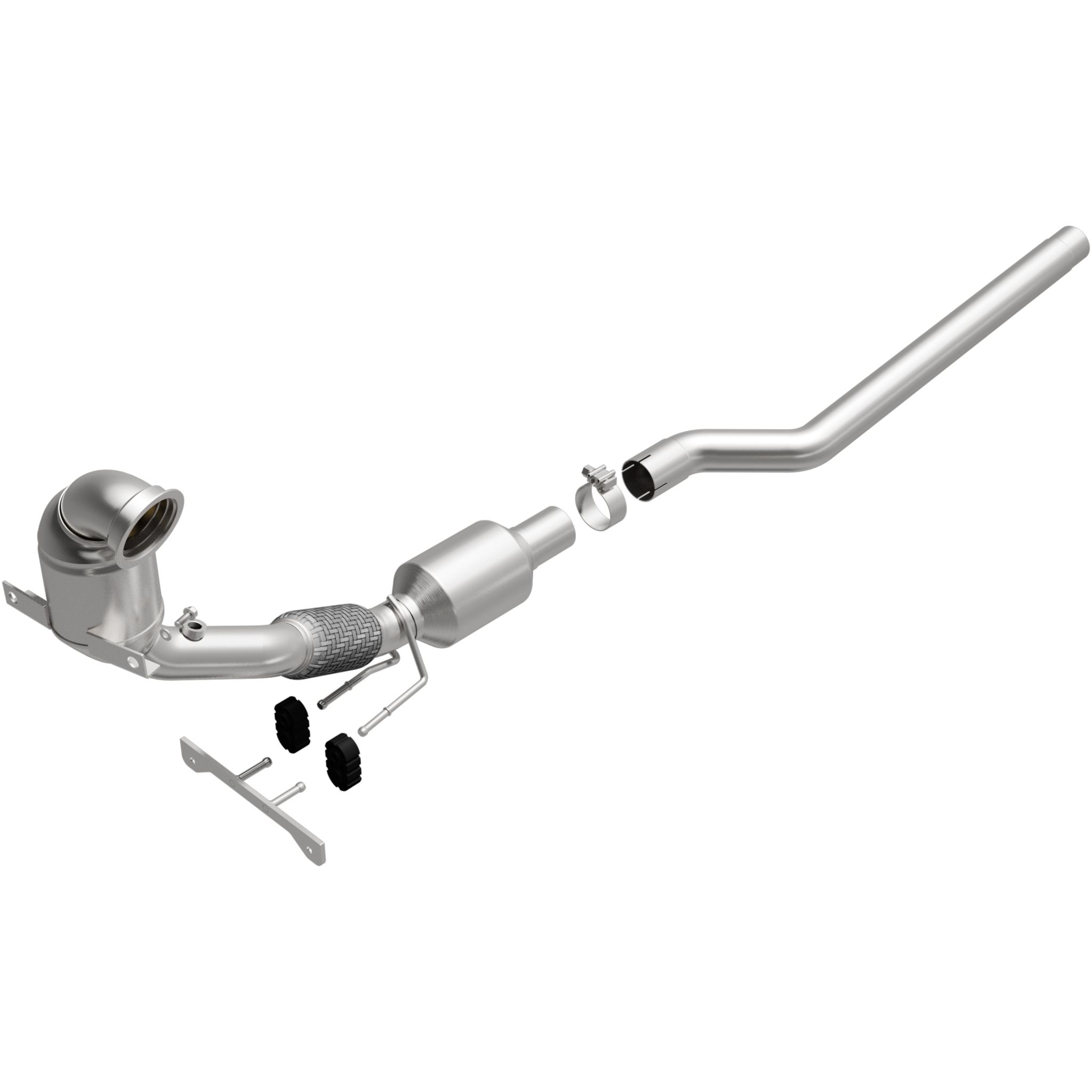 Keep the check engine light off with MagnaFlow OEM Grade Federal/EPA Compliant Direct-Fit Catalytic Converter 280341. With features including free-flowing mandrel-bent tubing and highly corrosion resistant stainless steel construction, easily install this spun body converter yourself using the proper tools, no cutting or welding required. MagnaFlow's state-of-the-art metrology department uses the latest 3D scanning systems during research and development, so you can be confident that your new part will fit and function like the original equipment. By replicating the OE spun body design, the single laser fusion weld greatly reduces the possibility of a leak, and our compact, low-mass design also allows for greater thermal efficiency. This direct-fit catalytic converter is designed specifically for the 2018-2024 Volkswagen Tiguan and interchanges with OE part 5QN 254 500 . This replacement part is designed to meet or exceed Federal emissions requirements set forth by the EPA, complying with legal standards for OBDII Federally registered vehicles with California or Federal/EPA Emission systems.
