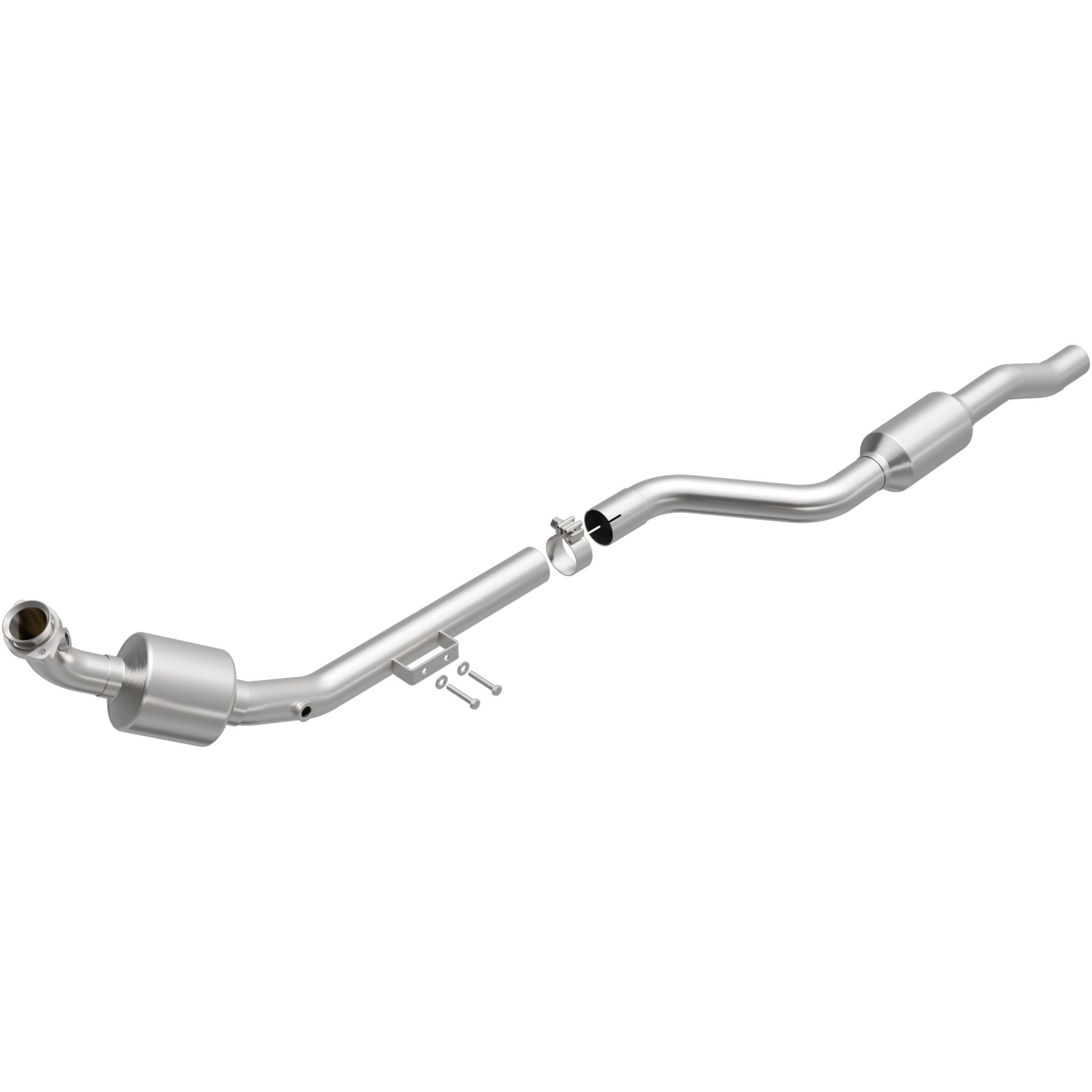 Keep the check engine light off with MagnaFlow California Grade CARB Compliant Direct-Fit Catalytic Converter 551706. With features including free-flowing mandrel-bent tubing and highly corrosion resistant stainless steel construction, easily install this spun body converter yourself using the proper tools, no cutting or welding required. MagnaFlow's state-of-the-art metrology department uses the latest 3D scanning systems during research and development, so you can be confident that your new part will fit and function like the original equipment. By replicating the OE spun body design, the single laser fusion weld greatly reduces the possibility of a leak, and our compact, low-mass design also allows for greater thermal efficiency. This direct-fit catalytic converter is designed to fit the 2006 Mercedes-Benz CLS500 and 2005-2006 Mercedes-Benz E500. This replacement part is designed to meet or exceed California Air Resource Board requirements, and has undergone additional testing to comply with CARB guidelines to allow for legal use in California and CARB restricted states, for the listed vehicles.