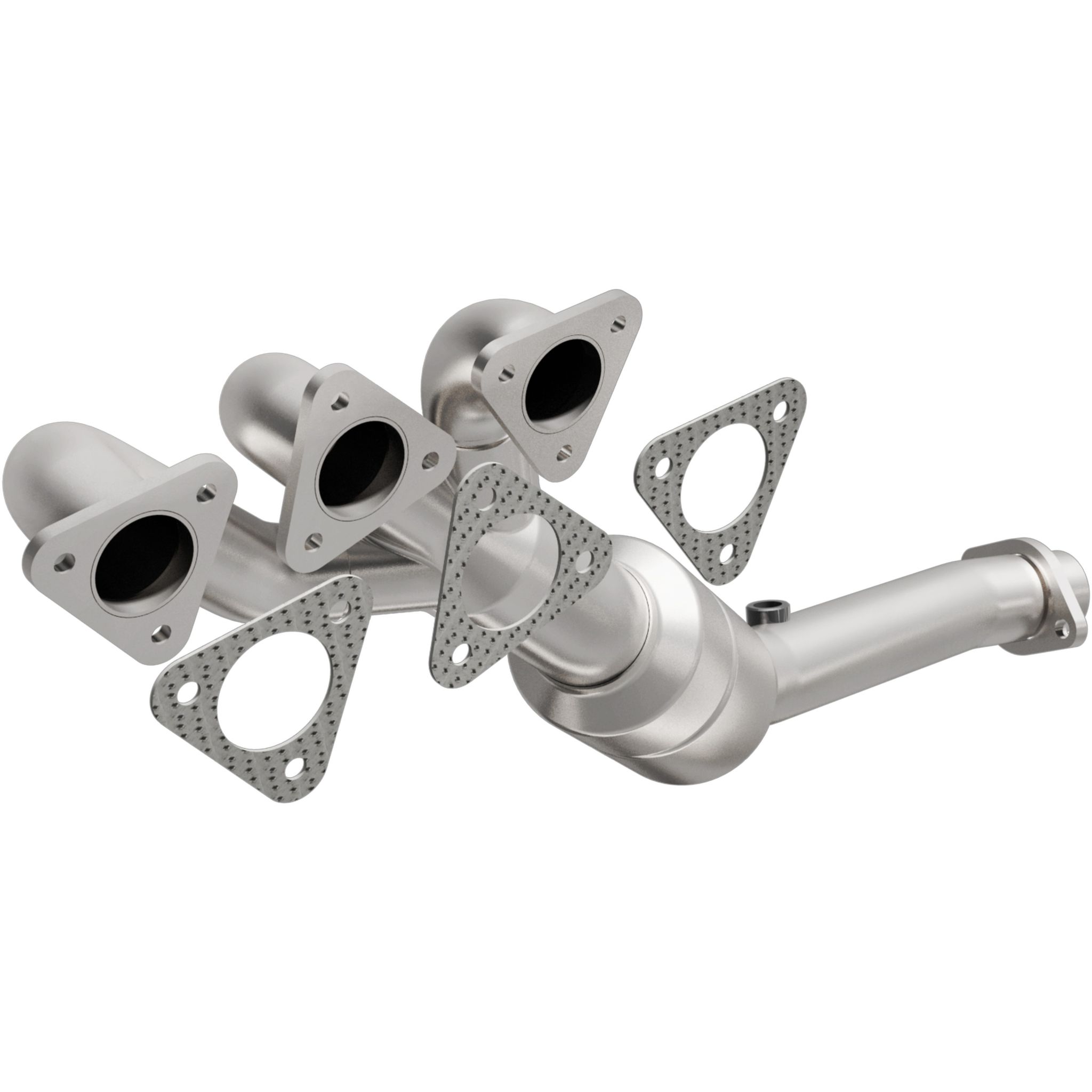 Keep the check engine light off with MagnaFlow California Grade CARB Compliant Direct-Fit Catalytic Converter 452415. With features including free-flowing mandrel-bent tubing and highly corrosion resistant stainless steel construction, easily install this spun body converter yourself using the proper tools, no cutting or welding required. MagnaFlow's state-of-the-art metrology department uses the latest 3D scanning systems during research and development, so you can be confident that your new part will fit and function like the original equipment. By replicating the OE spun body design, the single laser fusion weld greatly reduces the possibility of a leak, and our compact, low-mass design also allows for greater thermal efficiency. Designed to fit the 2001-2006 BMW M3 and 2001-2002 BMW Z3, this direct-fit catalytic converter also interchanges with OE parts 11 62 7 834 673 and 11 62 7 832 063. Avoid potential exhaust leaks by using the included gaskets to get a proper seal. This replacement part is designed to meet or exceed California Air Resource Board requirements, and has undergone additional testing to comply with CARB guidelines to allow for legal use in California and CARB restricted states, for the listed vehicles.