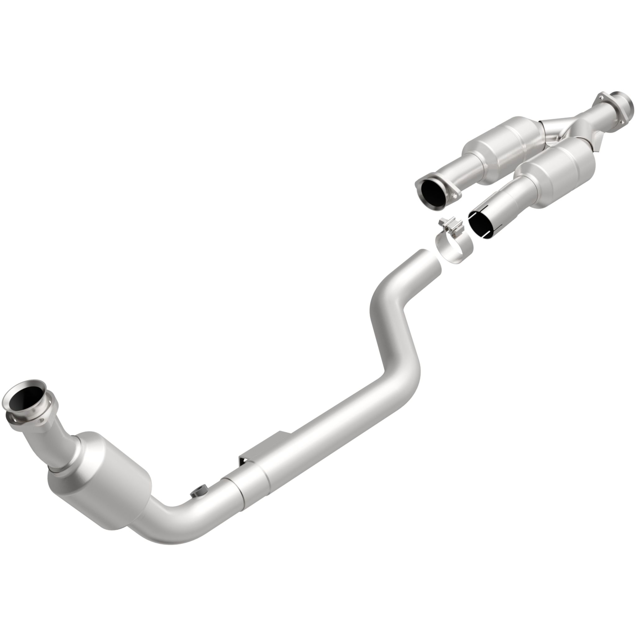 Keep the check engine light off with MagnaFlow HM Grade Federal/EPA Compliant Direct-Fit Catalytic Converter 24540. With features including free-flowing mandrel-bent tubing and highly corrosion resistant stainless steel construction, easily install this spun body converter yourself using the proper tools, no cutting or welding required. MagnaFlow's state-of-the-art metrology department uses the latest 3D scanning systems during research and development, so you can be confident that your new part will fit and function like the original equipment. By replicating the OE spun body design, the single laser fusion weld greatly reduces the possibility of a leak, and our compact, low-mass design also allows for greater thermal efficiency. Designed to fit the 2004-2008 Chrysler Crossfire and 2001-2003 Mercedes-Benz SLK320, this direct-fit catalytic converter also interchanges with OE parts 170 490 01 20 80 and 170 490 03 20 64, among others. This replacement part is designed to meet or exceed Federal emissions requirements set forth by the EPA, complying with legal standards for OBDII Federally registered vehicles with Federal/EPA Emission systems.