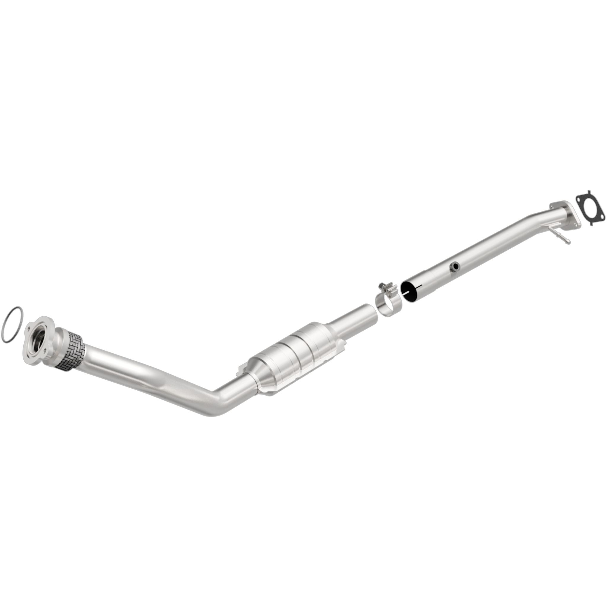 Keep the check engine light off with MagnaFlow HM Grade Federal/EPA Compliant Direct-Fit Catalytic Converter 24710. With features including free-flowing mandrel-bent tubing and highly corrosion resistant stainless steel construction, easily install this spun body converter yourself using the proper tools, no cutting or welding required. MagnaFlow's state-of-the-art metrology department uses the latest 3D scanning systems during research and development, so you can be confident that your new part will fit and function like the original equipment. By replicating the OE spun body design, the single laser fusion weld greatly reduces the possibility of a leak, and our compact, low-mass design also allows for greater thermal efficiency. This direct-fit catalytic converter is designed to fit the 2004-2005 Buick Rendezvous and 2004-2005 Pontiac Aztek. Avoid potential exhaust leaks by using the included gaskets to get a proper seal. This replacement part is designed to meet or exceed Federal emissions requirements set forth by the EPA, complying with legal standards for OBDII Federally registered vehicles with Federal/EPA Emission systems.