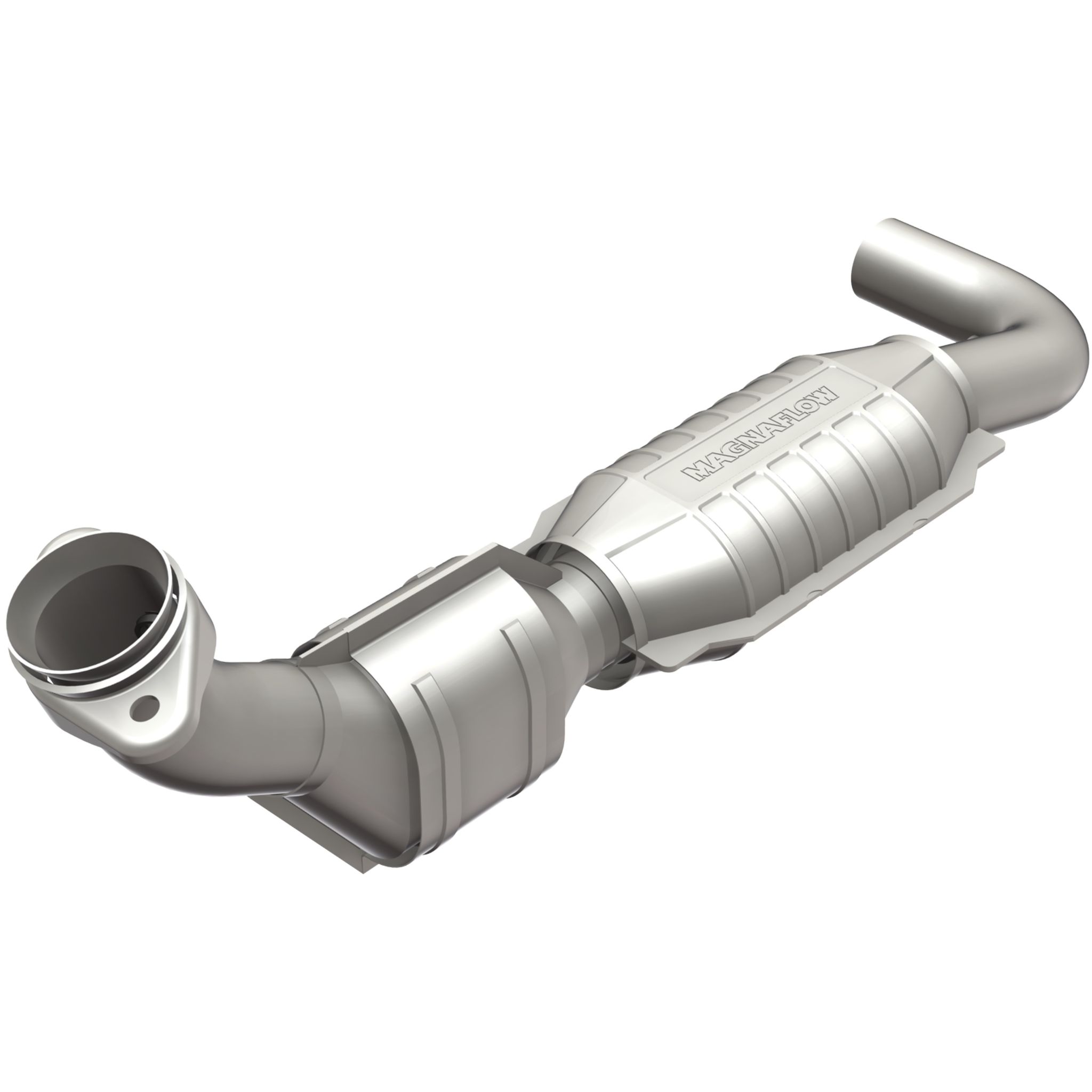 MagnaFlow HM Grade Federal/EPA Compliant Direct-Fit Catalytic Converter 93447 helps keep the check engine light off. DIY installation is easy with the proper tools (no cutting or welding required). With features including mandrel-bent tubing to eliminate flow restrictions and stainless steel construction to resist corrosion, you can have confidence in the quality of this catalytic converter. Using state-of-the-art 3D scanning systems in the design process, the MagnaFlow metrology department ensures this new part to fit and function like the original equipment. This direct-fit catalytic converter is designed to fit the 2001-2003 Ford F-150 and 2004 Ford F-150 Heritage. This replacement part is designed to meet or exceed Federal emissions requirements set forth by the EPA, complying with legal standards for OBDII Federally registered vehicles with Federal/EPA Emission systems.