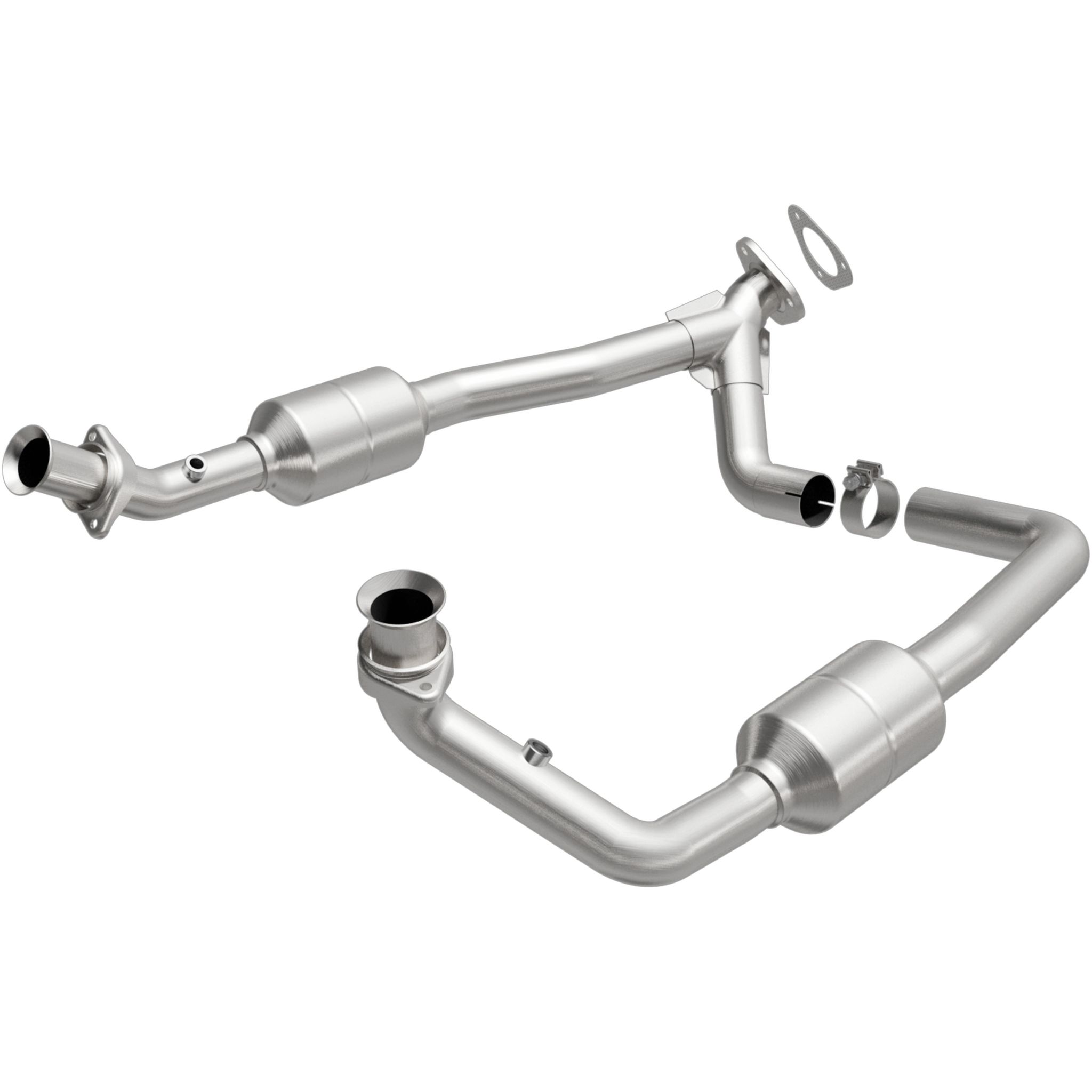 Keep the check engine light off with MagnaFlow OEM Grade Federal/EPA Compliant Direct-Fit Catalytic Converter 51378. With features including free-flowing mandrel-bent tubing and highly corrosion resistant stainless steel construction, easily install this spun body converter yourself using the proper tools, no cutting or welding required. MagnaFlow's state-of-the-art metrology department uses the latest 3D scanning systems during research and development, so you can be confident that your new part will fit and function like the original equipment. By replicating the OE spun body design, the single laser fusion weld greatly reduces the possibility of a leak, and our compact, low-mass design also allows for greater thermal efficiency. Designed to fit the 2000-2003 Ford E-350 Super Duty, 2000-2002 Ford E-250 Econoline, and more, this direct-fit catalytic converter also interchanges with OE parts 1C2Z-5F250-BA and YC2Z-5F250-AA, among others. Avoid potential exhaust leaks by using the included gaskets to get a proper seal. This replacement part is designed to meet or exceed Federal emissions requirements set forth by the EPA, complying with legal standards for OBDII Federally registered vehicles with California or Federal/EPA Emission systems.