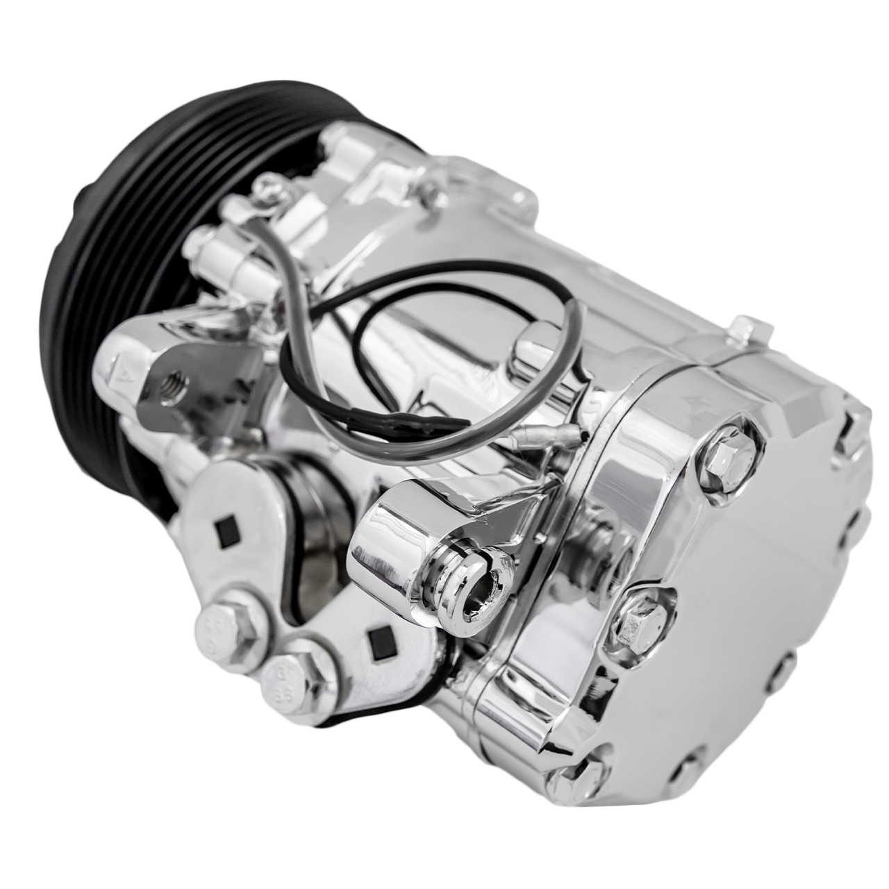 Ultra Series Sanden 7176 / SD-7 air conditioning compressor, Chrome finish, Aluminum, 6-Groove serpentine clutch, R-134A