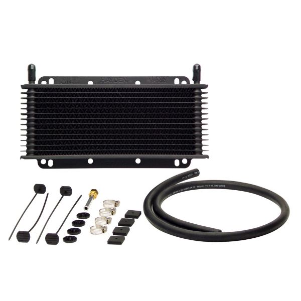 This TCI Plate and Fin Oil Cooler is the ultimate in oil cooling technology. Offering a 33 % temperature reduction, this cooler features a black powder-coated finish with 3/8 male barb fittings for Transmission/Engine/Power-Steering Lines.
