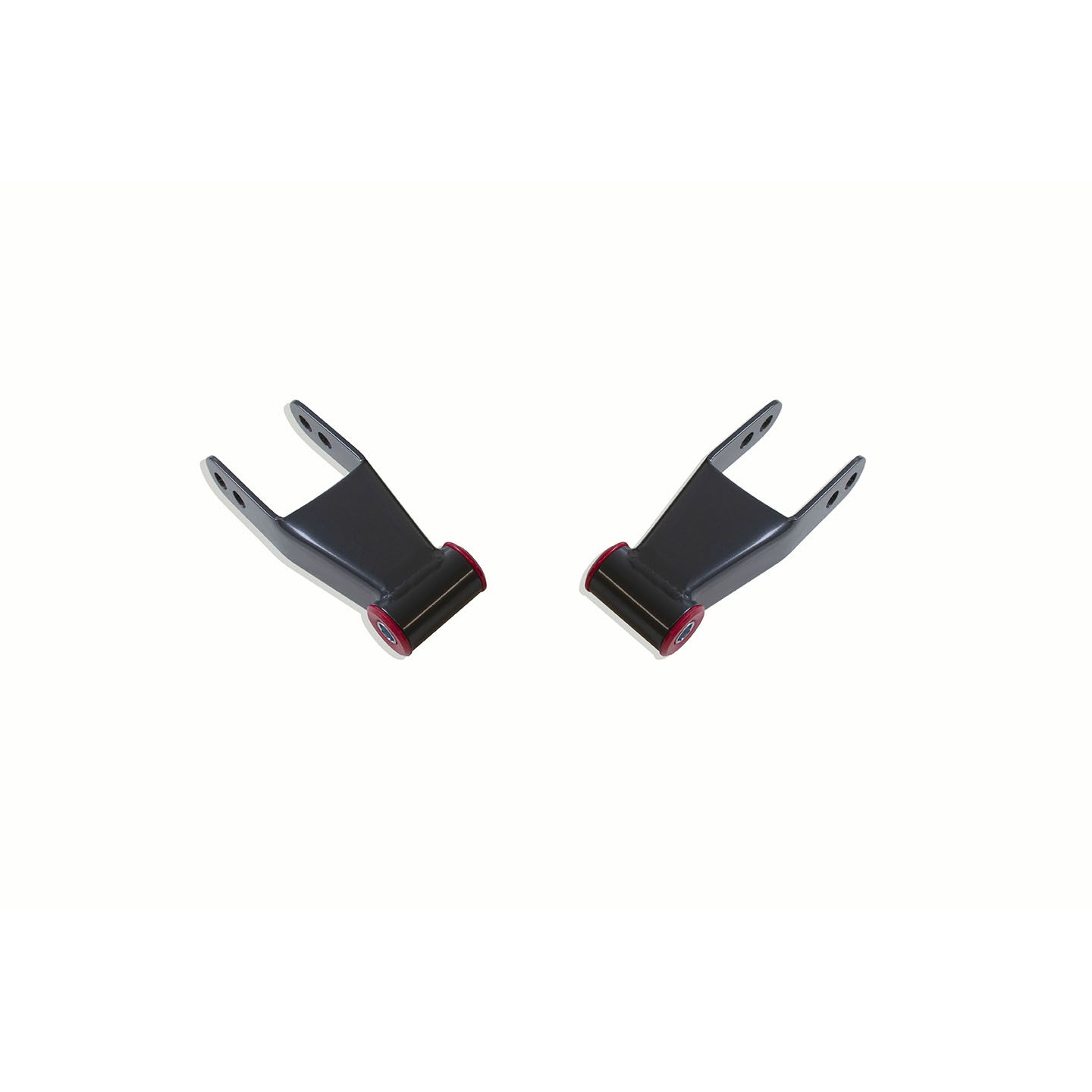 MAX TRAC SUSPENSION'S PART# 410520 IS A PAIR OF 1.5"-2" REAR SHACKLES FABRICATED FROM STEEL & POWDER COATED GREY