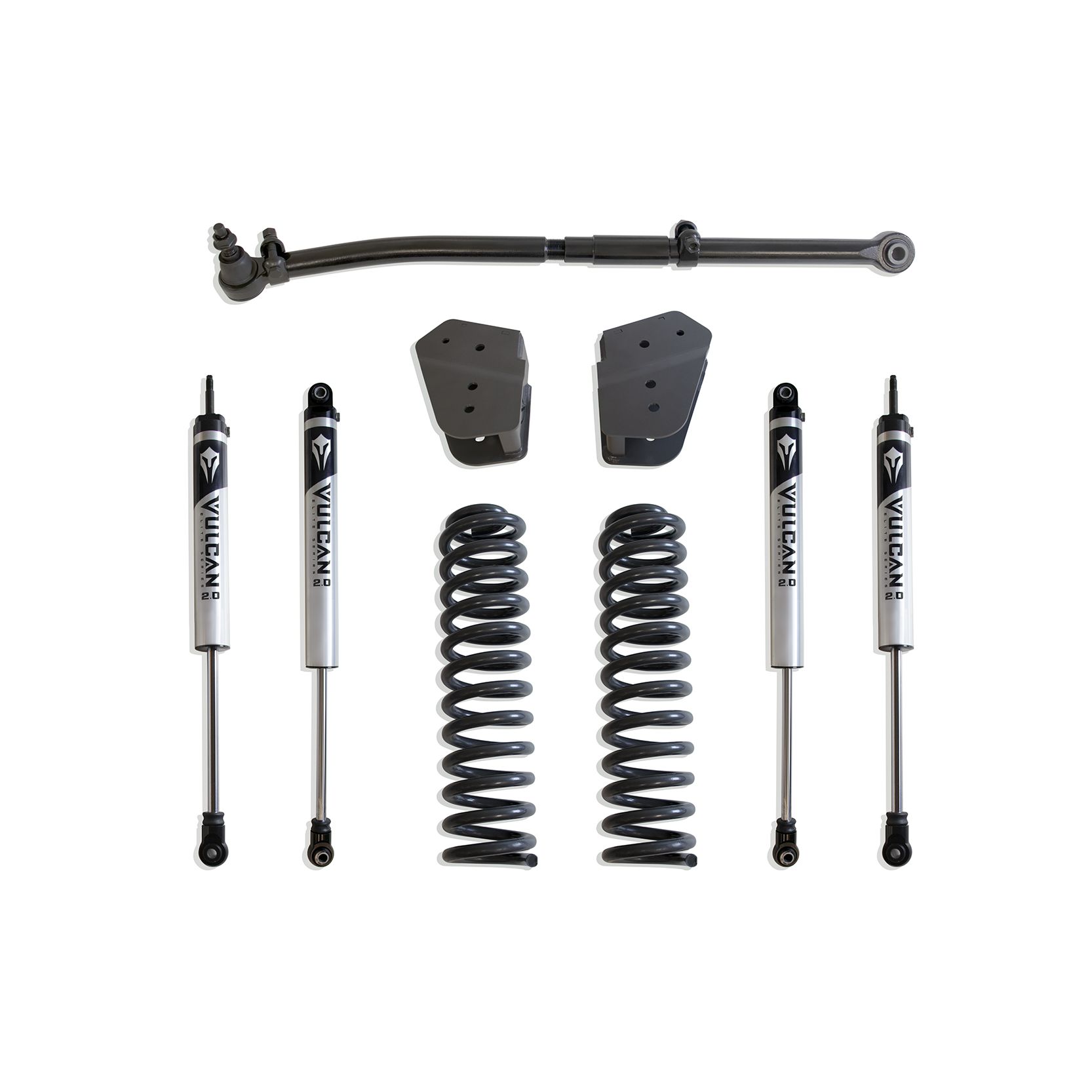 MAX TRAC SUSPENSION'S KIT# K943325V IS A COMPLETE 2.5" LIFT KIT INCLUDING DIESEL COILS, RADIUS ARM BRACKETS, ADJ TRAC BAR & FRONT/REAR VULCAN SERIES SHOCKS