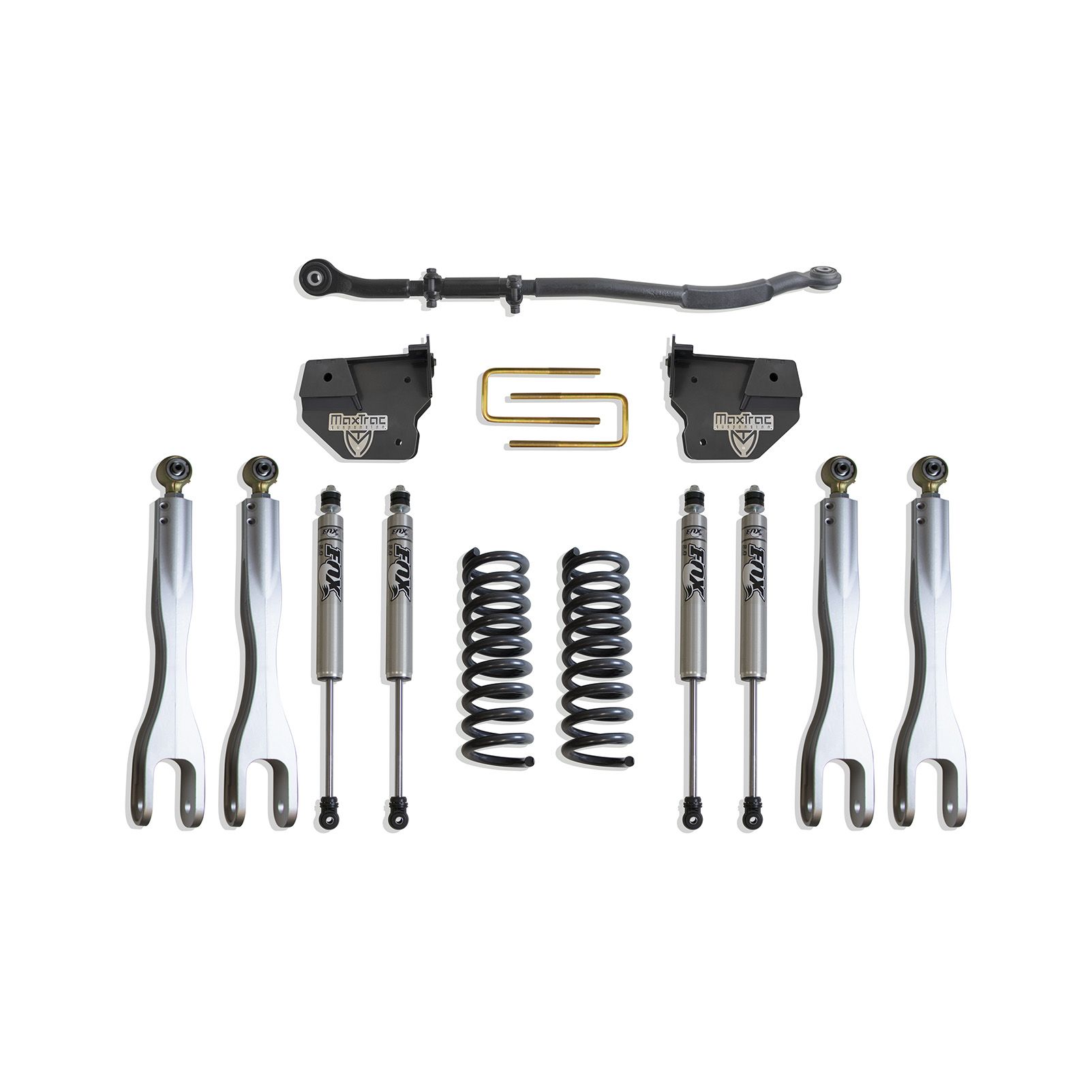 MAX TRAC SUSPENSION'S KIT# K947325FL IS A COMPLETE 2.5" LIFT KIT INCLUDING DIESEL COILS, FORGED ALUMINUM 4 LINKS, ADJ TRAC BAR & FRONT/REAR FOX 2.0 PERFORMANCE SERIES SHOCKS
