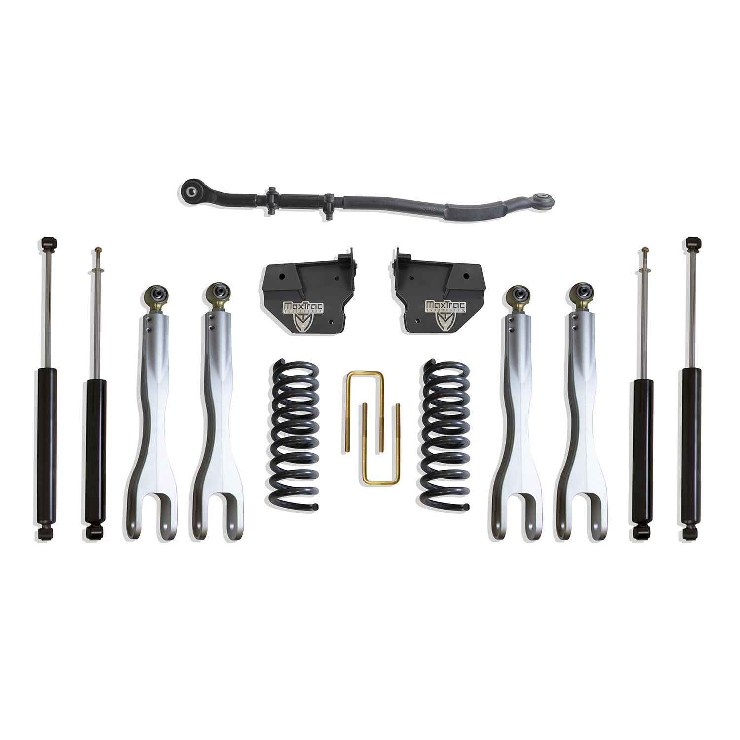 MAX TRAC SUSPENSION'S KIT# K947325L IS A COMPLETE 2.5" LIFT KIT INCLUDING DIESEL COILS, FORGED ALUMINUM 4 LINKS, ADJ TRAC BAR & FRONT/REAR MAX TRAC SHOCKS