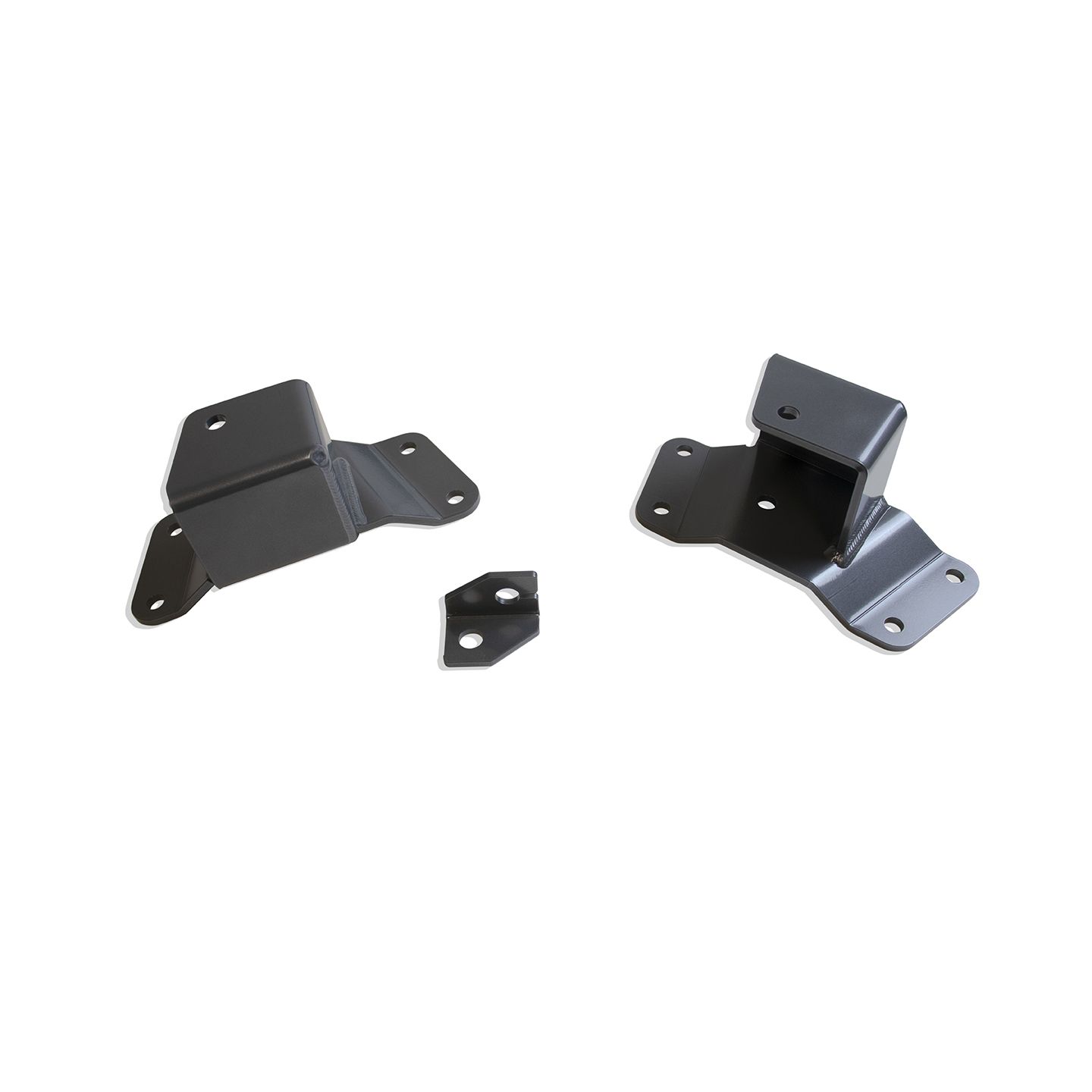 MAX TRAC SUSPENSION'S PART# 420520 IS A PAIR OF 2" REAR LOWERING HANGERS INCLUDING E-BRAKE BRACKET, FABRICATED FROM STEEL & POWDER COATED GREY