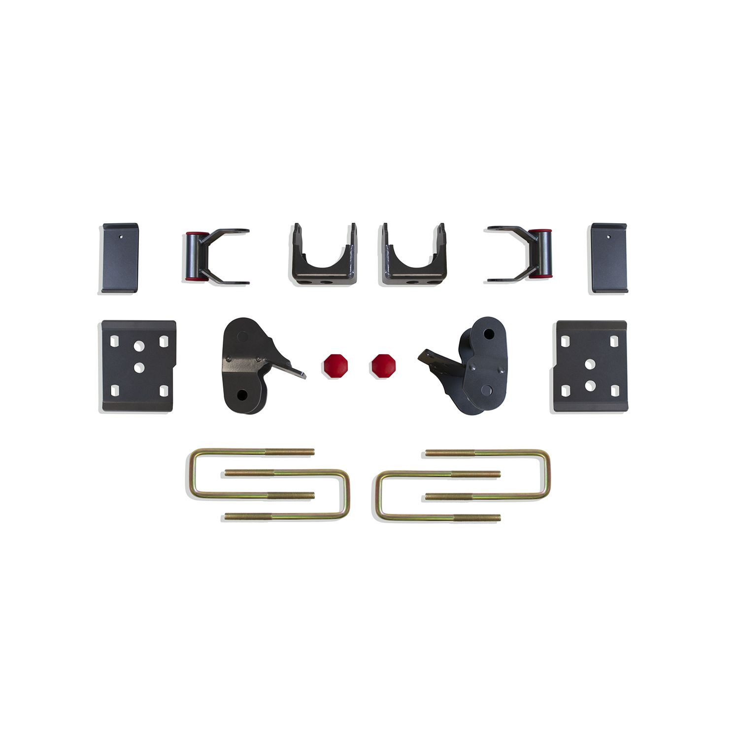 MAX TRAC SUSPENSION'S PART# 303230 IS A 3" REAR FLIP KIT INCLUDING AXLE RELOCATORS, HANGERS, SHACKLES, BUMP STOPS & SPRING PLATES