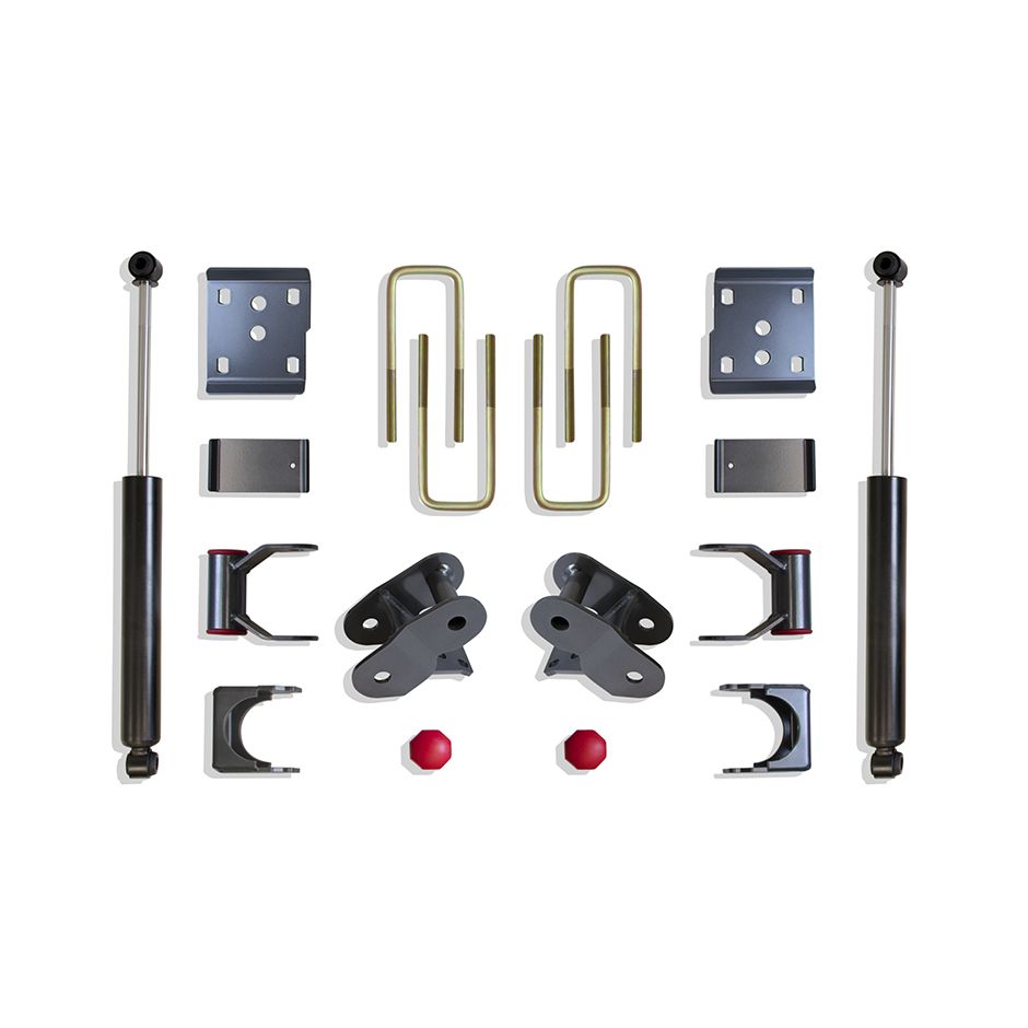 MAX TRAC SUSPENSION'S PART# 203230 IS A 3" REAR LOWERING BOX KIT INCLUDING FLIP KIT, HANGERS, SHACKLES, BUMP STOPS & REAR SHOCKS