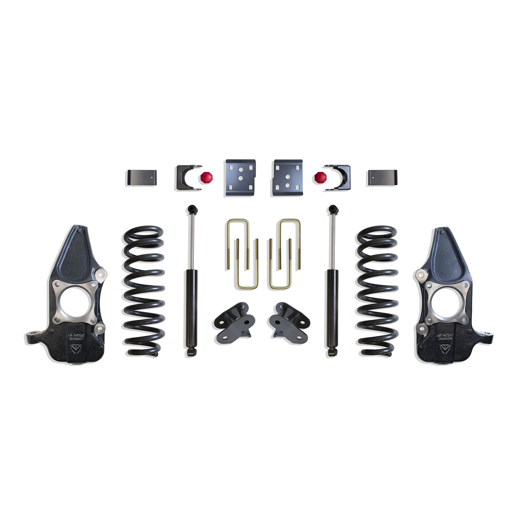 MAX TRAC SUSPENSION'S KIT# KC333235-48 IS A COMPLETE 3"/5" LOWERING KIT INCLUDING V8 EC/CC COILS, SPINDLES, FLIP KIT, HANGERS & REAR SHOCKS