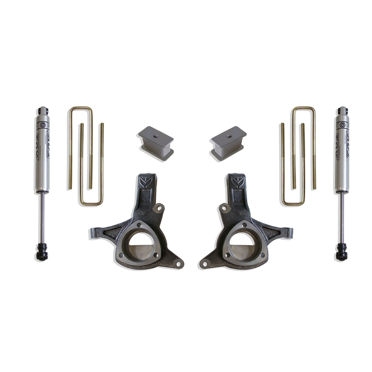 MAX TRAC SUSPENSION'S KIT# K881343F IS A COMPLETE 4.5" LIFT KIT INCLUDING SPINDLES, EXTENDED BRAKE LINES, BLOCKS, U-BOLTS & FOX 2.0 PERFORMANCE SERIES REAR SHOCKS
