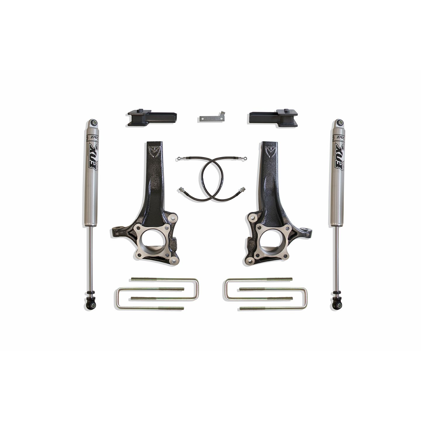 MAX TRAC SUSPENSION'S KIT# K883242F IS A COMPLETE 4.5" LIFT KIT INCLUDING SPINDLES, EXTENDED BRAKE LINES, BLOCKS, U-BOLTS & FOX 2.0 PERFORMANCE SERIES REAR SHOCKS