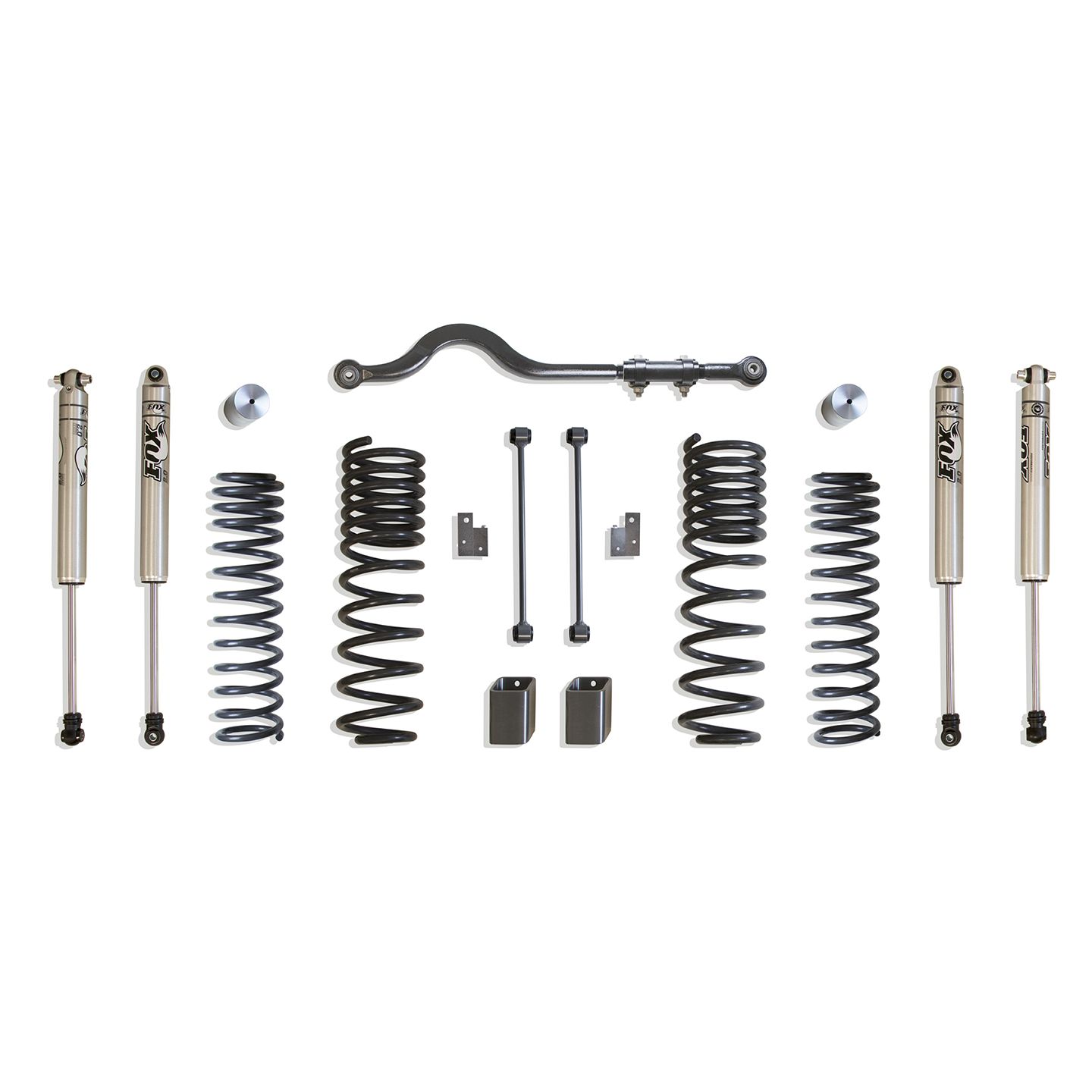 MAX TRAC SUSPENSION'S KIT# K949942F IS A COMPLETE 4.5" LIFT KIT INCLUDING F&R COILS, F&R BUMP STOP EXTENSIONS, FRONT TRAC BAR, REAR SWAY BAR END LINKS & FRONT/REAR FOX 2.0 PERFORMANCE SERIES SHOCKS