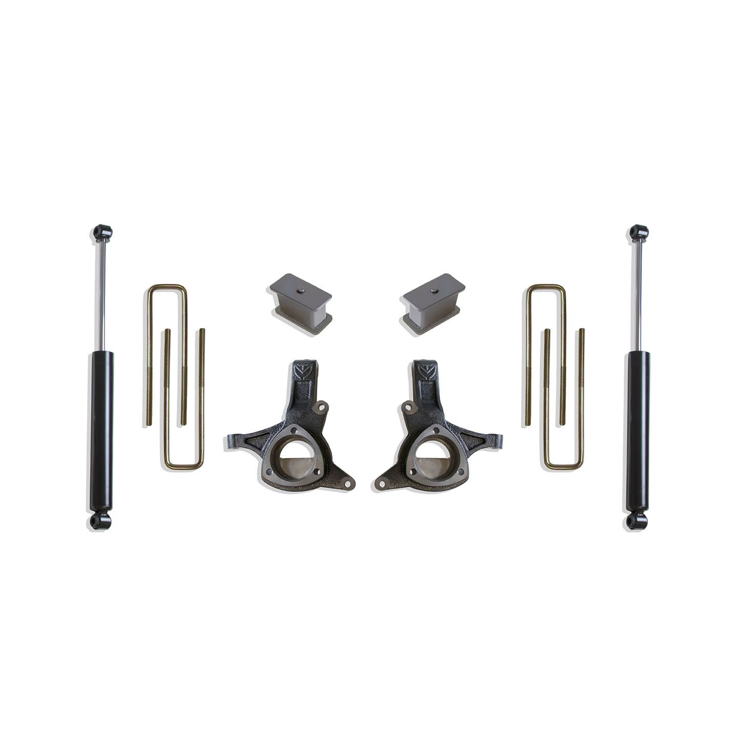 MAX TRAC SUSPENSION'S KIT# K881343 IS A COMPLETE 4.5" LIFT KIT INCLUDING SPINDLES, EXTENDED BRAKE LINES, BLOCKS, U-BOLTS & REAR MAX TRAC SHOCKS