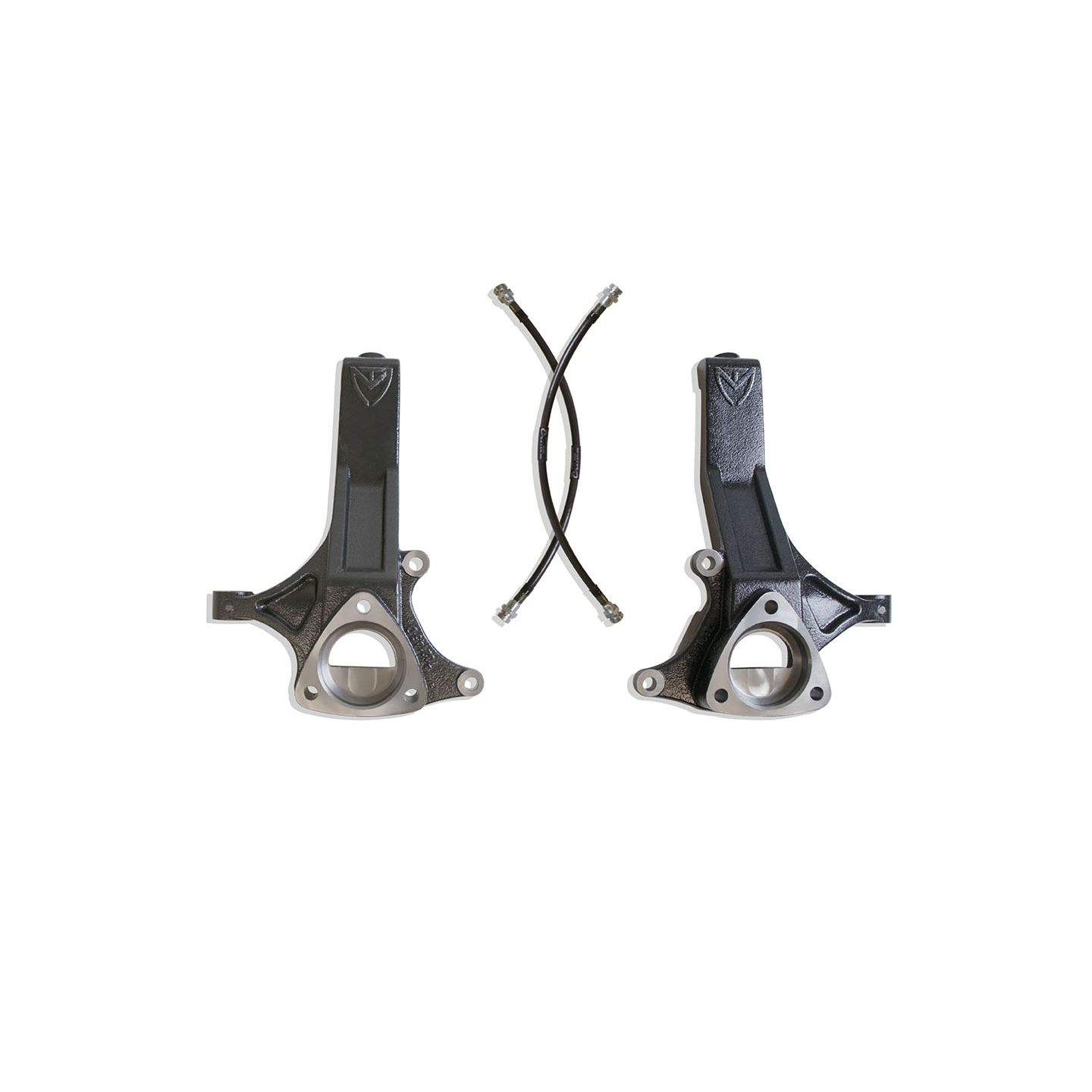 MAX TRAC SUSPENSION'S PART# 702145 IS A PAIR OF 4.5" LIFT SPINDLES W/ EXTENDED BRAKE LINES MADE FROM DUCTILE STEEL & E-COATED BLACK