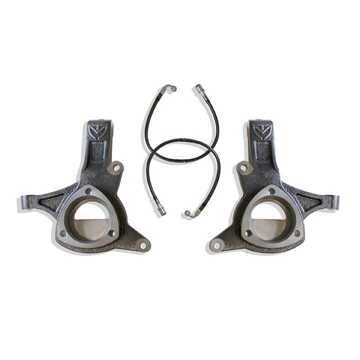 MAX TRAC SUSPENSION'S PART# 701345 IS A PAIR OF 4.5" LIFT SPINDLES W/ EXTENDED BRAKE LINES MADE FROM DUCTILE STEEL & E-COATED BLACK