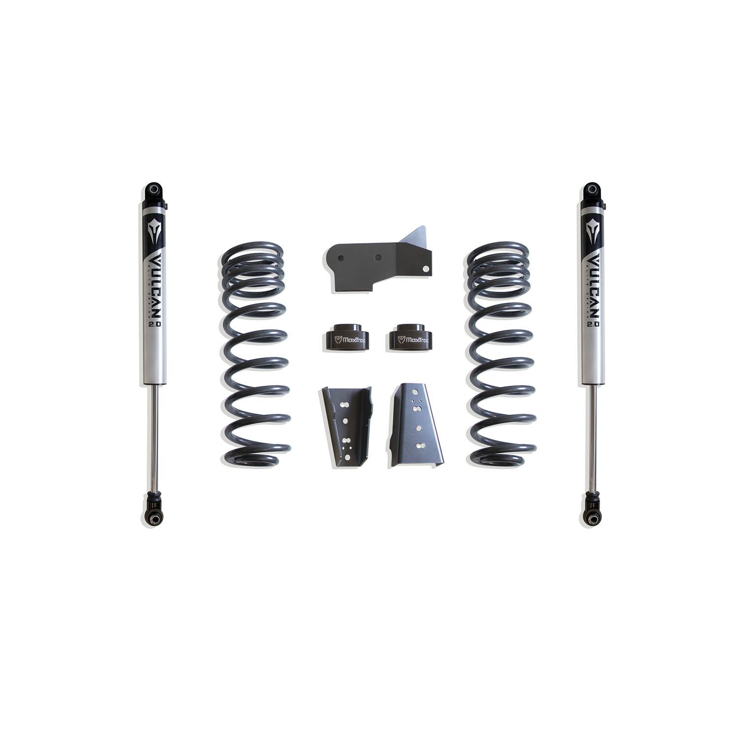 MAX TRAC SUSPENSION'S PART# 902445V IS A REAR BOX KIT INCLUDING 3" LIFT COILS, 1.5" COIL SPACERS, TRAC BAR BRACKET, SWAY BAR BRACKETS & A PAIR OF VULCAN SERIES SHOCKS