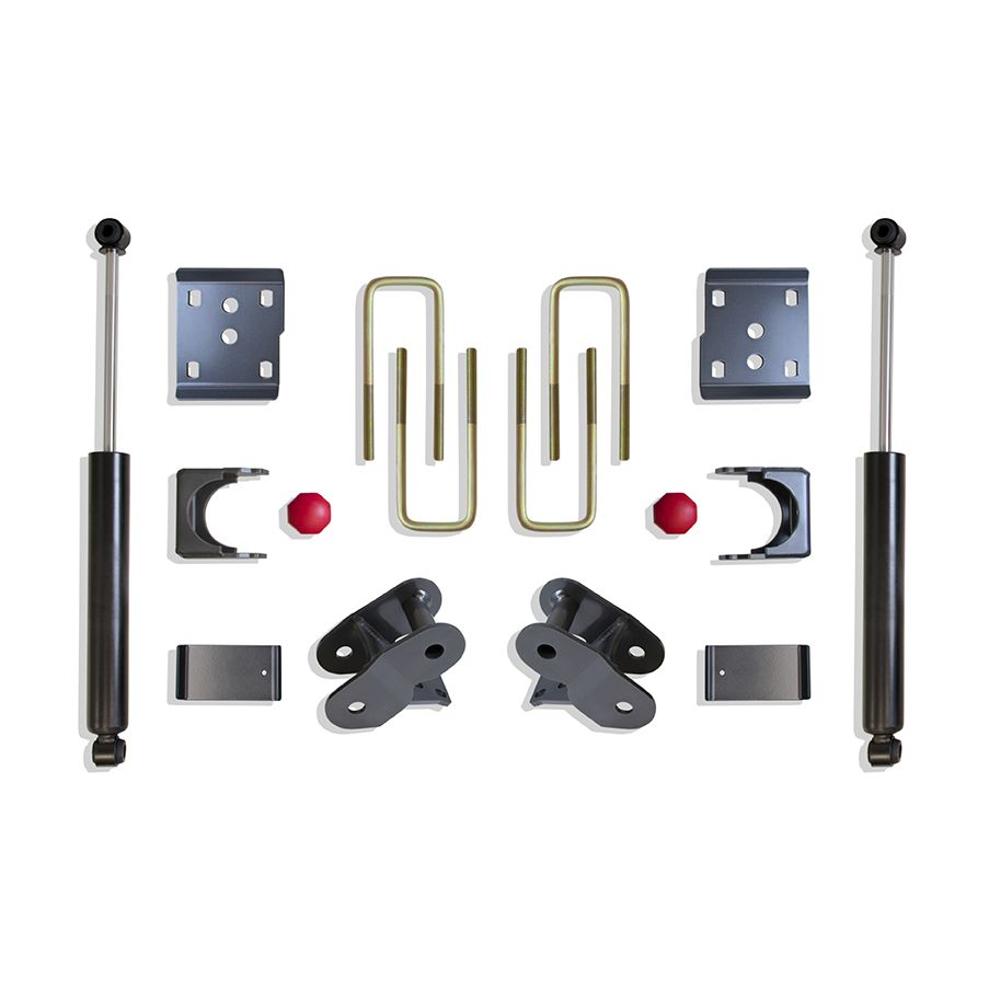 MAX TRAC SUSPENSION'S PART# 203240 IS A 4" REAR LOWERING BOX KIT INCLUDING FLIP KIT, HANGERS, BUMP STOPS & REAR SHOCKS