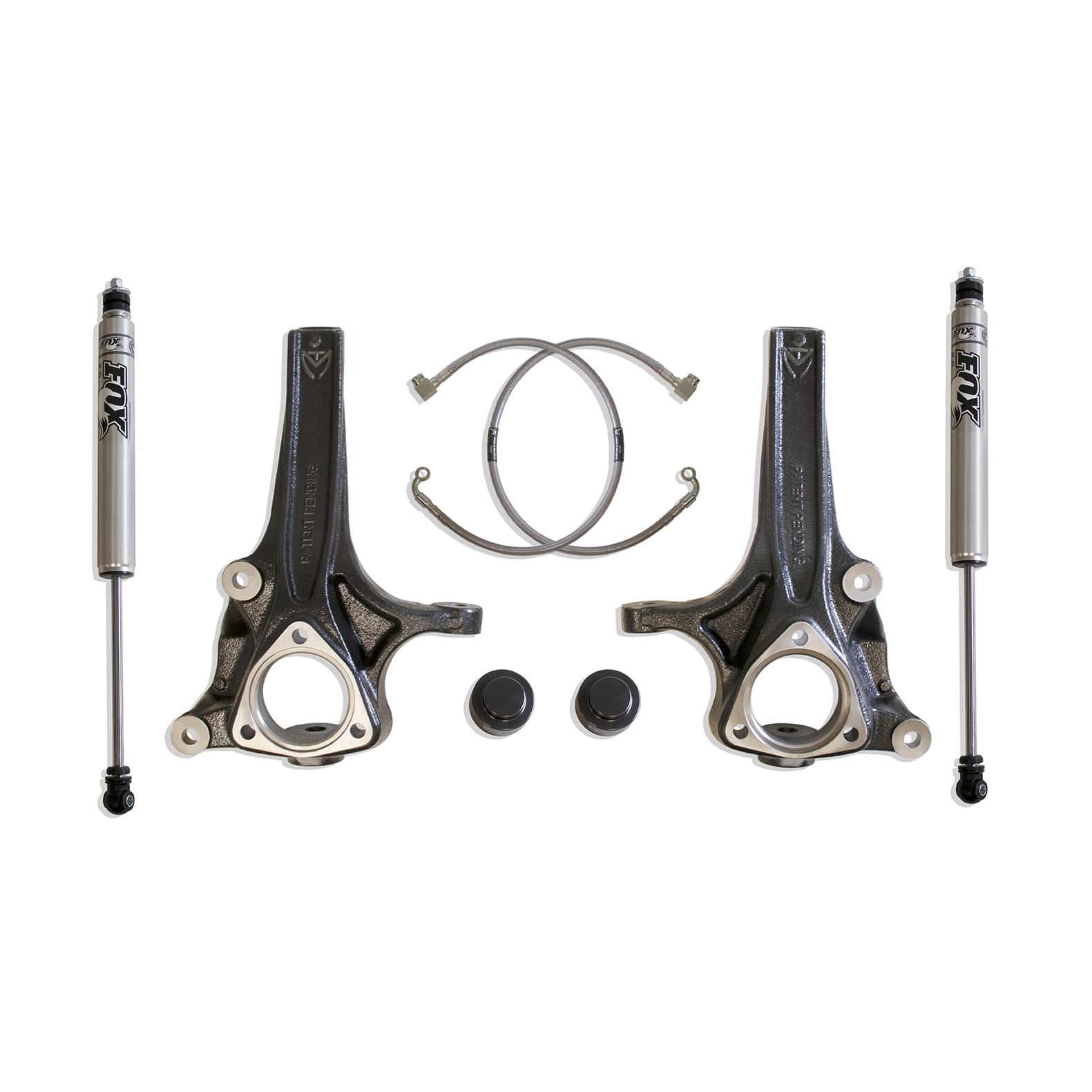 MAX TRAC SUSPENSION'S KIT# K882741F IS A COMPLETE 4" LIFT KIT INCLUDING SPINDLES, EXTENDED BRAKE LINES, REAR SPACERS & FOX 2.0 PERFORMANCE SERIES REAR SHOCKS
