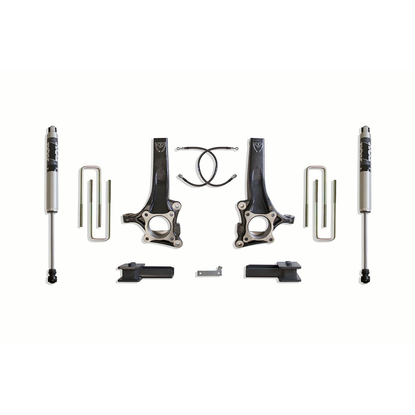 MAX TRAC SUSPENSION'S KIT# K883442F IS A COMPLETE 4" LIFT KIT INCLUDING SPINDLES, EXTENDED BRAKE LINES, BLOCKS, U-BOLTS & FOX 2.0 PERFORMANCE SERIES REAR SHOCKS