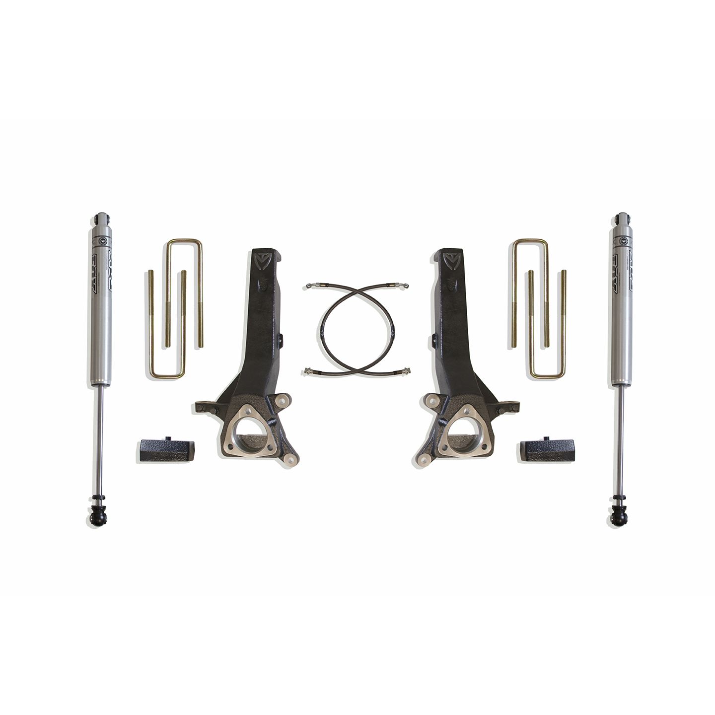 MAX TRAC SUSPENSION'S KIT# K885342F IS A COMPLETE 4" LIFT KIT INCLUDING SPINDLES, EXTENDED BRAKE LINES, BLOCKS, U-BOLTS & FOX 2.0 PERFORMANCE SERIES REAR SHOCKS