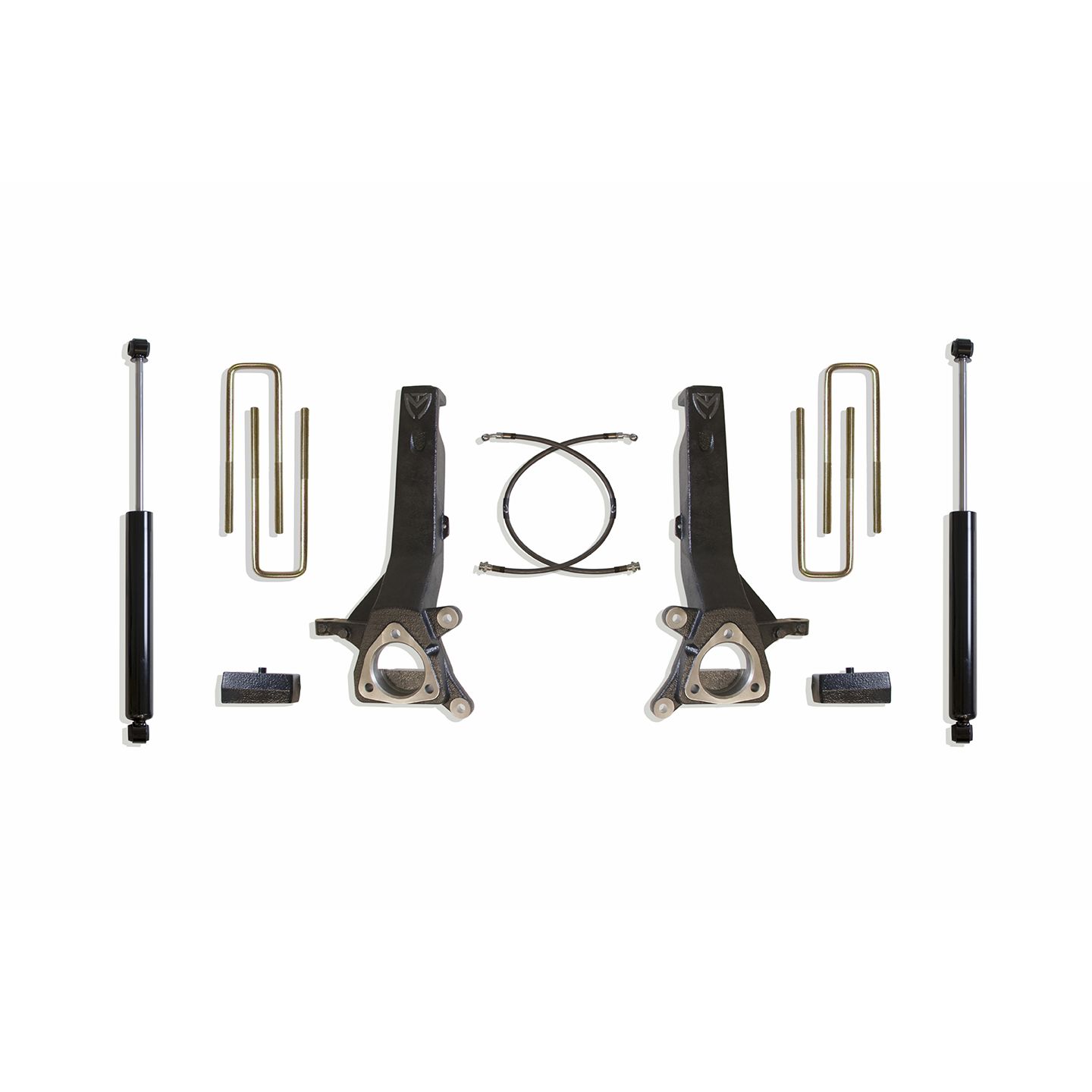 MAX TRAC SUSPENSION'S KIT# K885342 IS A COMPLETE 4" LIFT KIT INCLUDING SPINDLES, EXTENDED BRAKE LINES, BLOCKS, U-BOLTS & MAX TRAC REAR SHOCKS