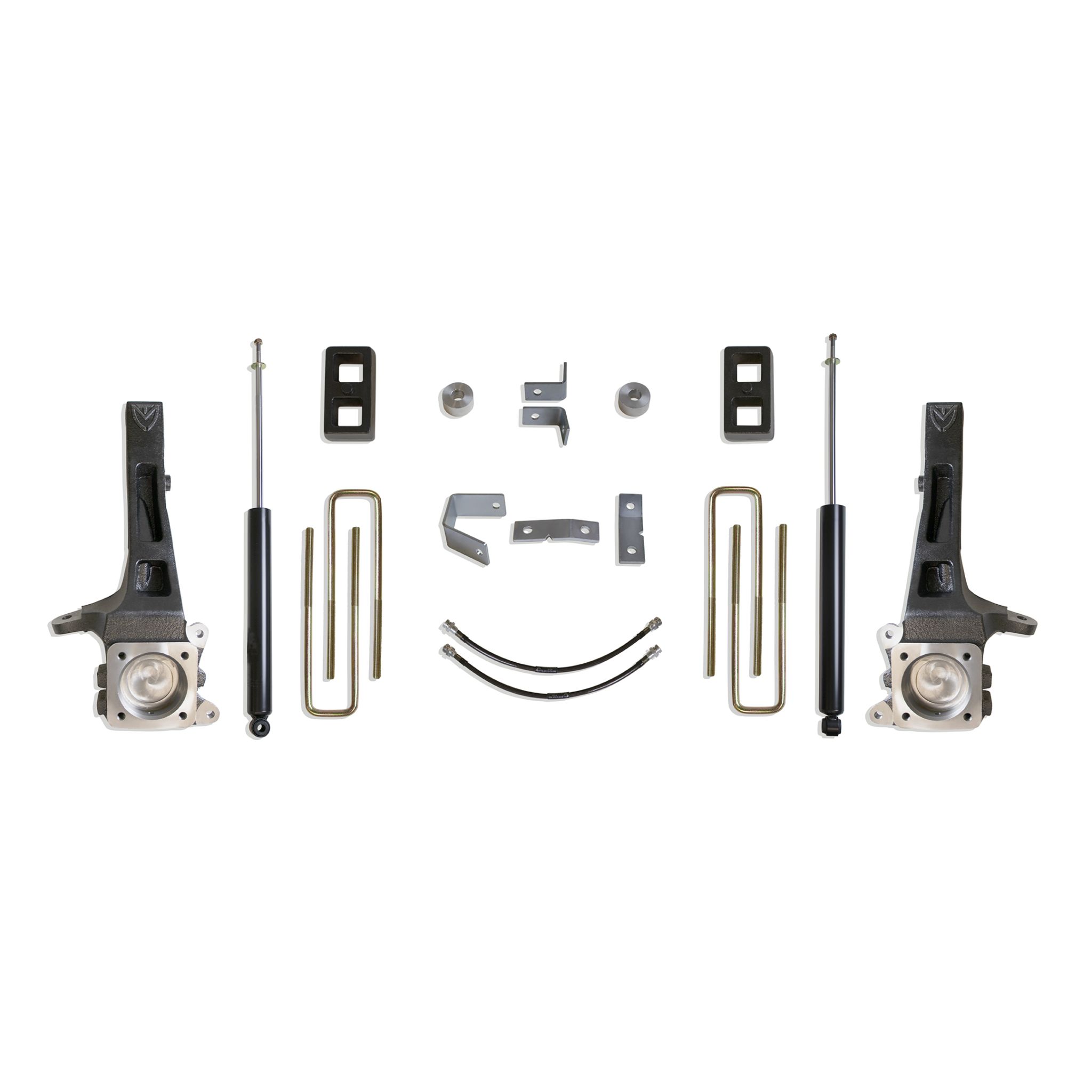MAX TRAC SUSPENSION'S KIT# K886842 IS A COMPLETE 4" LIFT KIT INCLUDING SPINDLES, EXTENDED BRAKE LINES, BLOCKS, U-BOLTS & MAX TRAC REAR SHOCKS