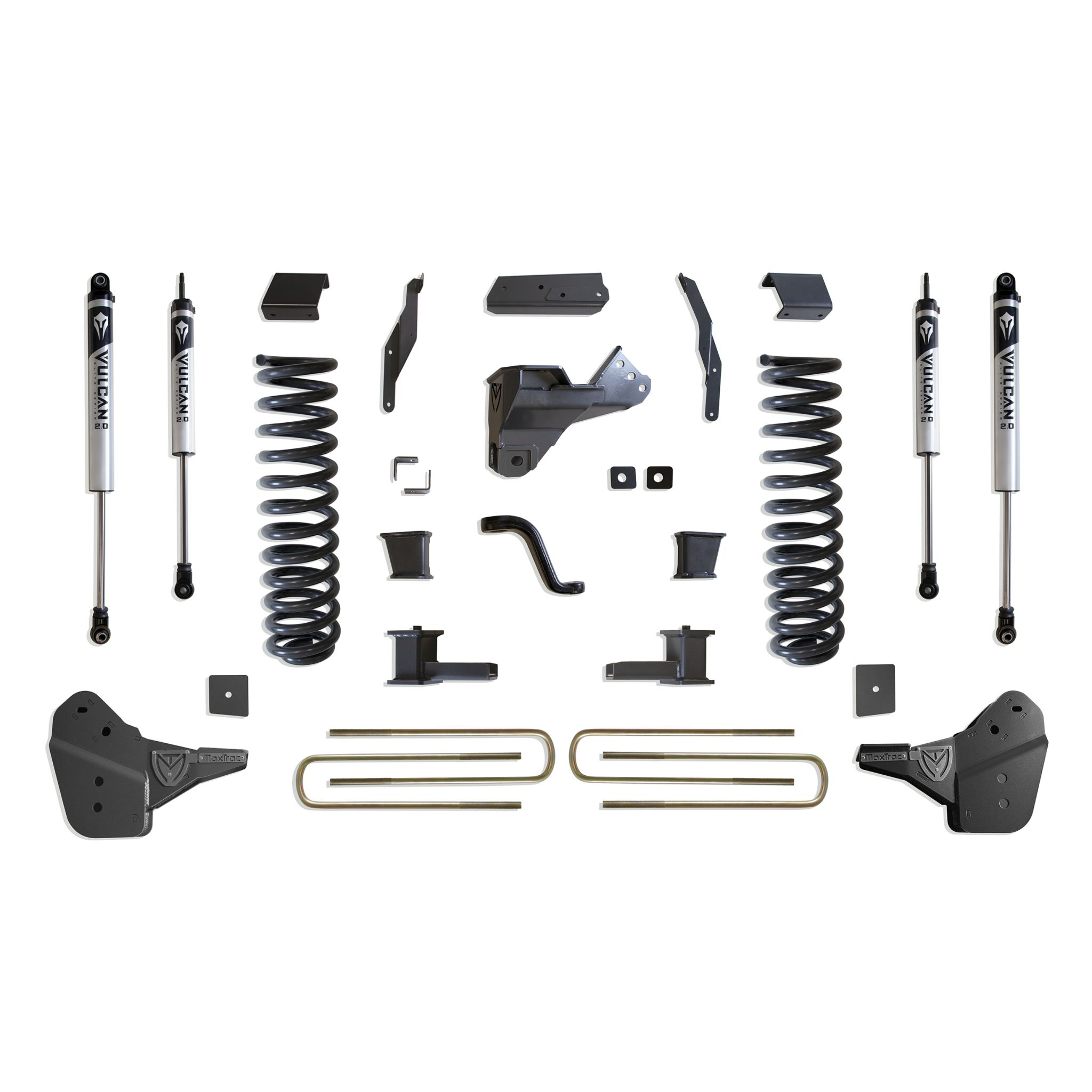 MAX TRAC SUSPENSION'S KIT# K944341V IS A COMPLETE 4" LIFT KIT INCLUDING DIESEL COILS, RADIUS ARM BRACKETS, TRAC BAR BRACKET, SWAY BAR BRACKETS, BUMP STOP EXTENSIONS, PITMAN ARM, BRAKE LINE BRACKETS, BLOCKS, U-BOLTS & FRONT/REAR VULCAN SERIES SHOCKS