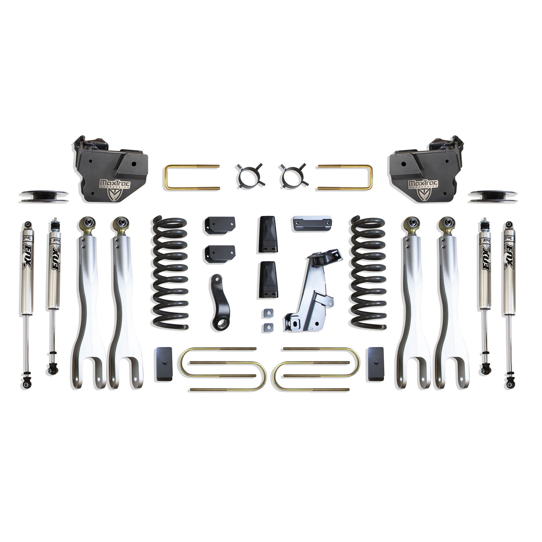 MAX TRAC SUSPENSION'S KIT# K947341FLA IS A COMPLETE 4" LIFT KIT INCLUDING DIESEL COILS, FORGED ALUMINUM 4 LINKS, TRAC BAR BRACKET, PITMAN ARM, SWAY BAR BRACKETS, BUMP STOPS, BLOCKS, U-BOLTS, REAR AIR BAG SPACERS & FRONT/REAR FOX 2.0 PERFORMANCE SERIES SHOCKS