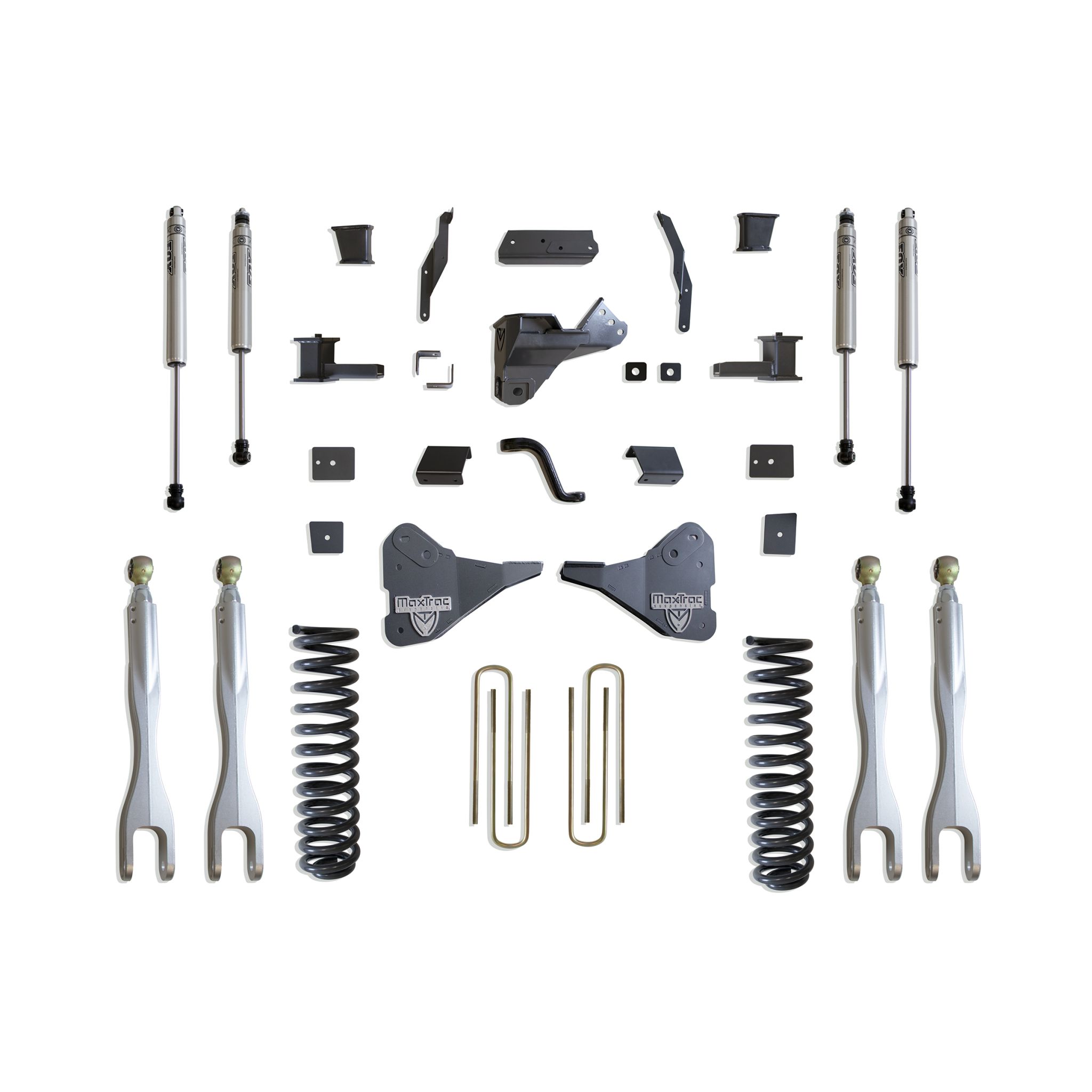 MAX TRAC SUSPENSION'S KIT# K944341FL IS A COMPLETE 4" LIFT KIT INCLUDING DIESEL COILS, FORGED ALUMINUM 4 LINKS, TRAC BAR BRACKET, SWAY BAR BRACKETS, BUMP STOP EXTENSIONS, PITMAN ARM, BRAKE LINE BRACKETS, BLOCKS, U-BOLTS & FRONT/REAR FOX 2.0 PERFORMANCE SERIES SHOCKS