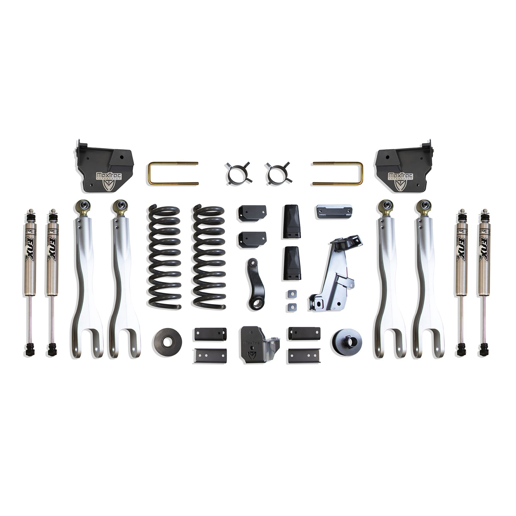 MAX TRAC SUSPENSION'S KIT# K947241FL IS A COMPLETE 4" LIFT KIT INCLUDING DIESEL COILS, FORGED ALUMINUM 4 LINKS, TRAC BAR BRACKET, PITMAN ARM, SWAY BAR BRACKETS, BUMP STOPS, REAR COIL SPACERS, TRAC BAR BRACKET, SWAY BAR BRACKETS, BUMP STOP EXTENSIONS & FRONT/REAR FOX 2.0 PERFORMANCE SERIES SHOCKS