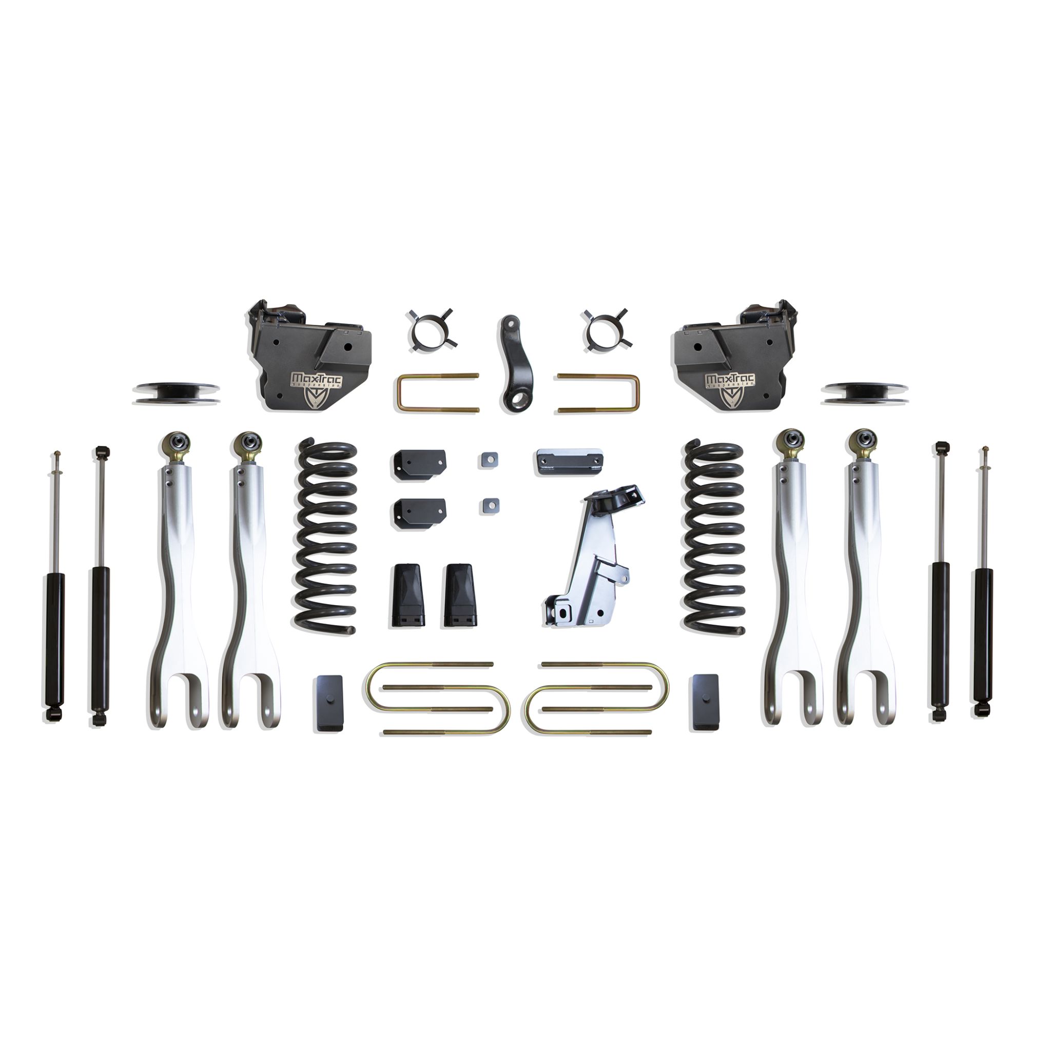 MAX TRAC SUSPENSION'S KIT# K947341LA IS A COMPLETE 4" LIFT KIT INCLUDING DIESEL COILS, FORGED ALUMINUM 4 LINKS, TRAC BAR BRACKET, PITMAN ARM, SWAY BAR BRACKETS, BUMP STOPS, BLOCKS, U-BOLTS, REAR AIR BAG SPACERS & FRONT/REAR MAX TRAC SHOCKS