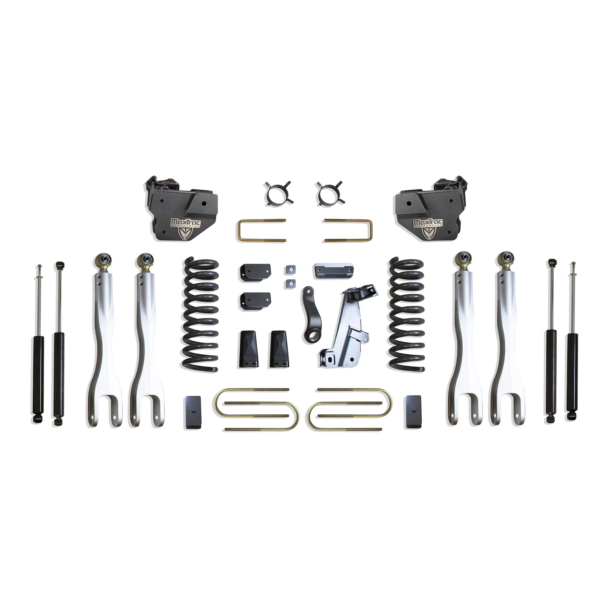 MAX TRAC SUSPENSION'S KIT# K947341L IS A COMPLETE 4" LIFT KIT INCLUDING DIESEL COILS, FORGED ALUMINUM 4LINKS, TRAC BAR BRACKET, PITMAN ARM, SWAY BAR BRACKETS, BUMP STOPS, BLOCKS, U-BOLTS & FRONT/REAR MAX TRAC SHOCKS
