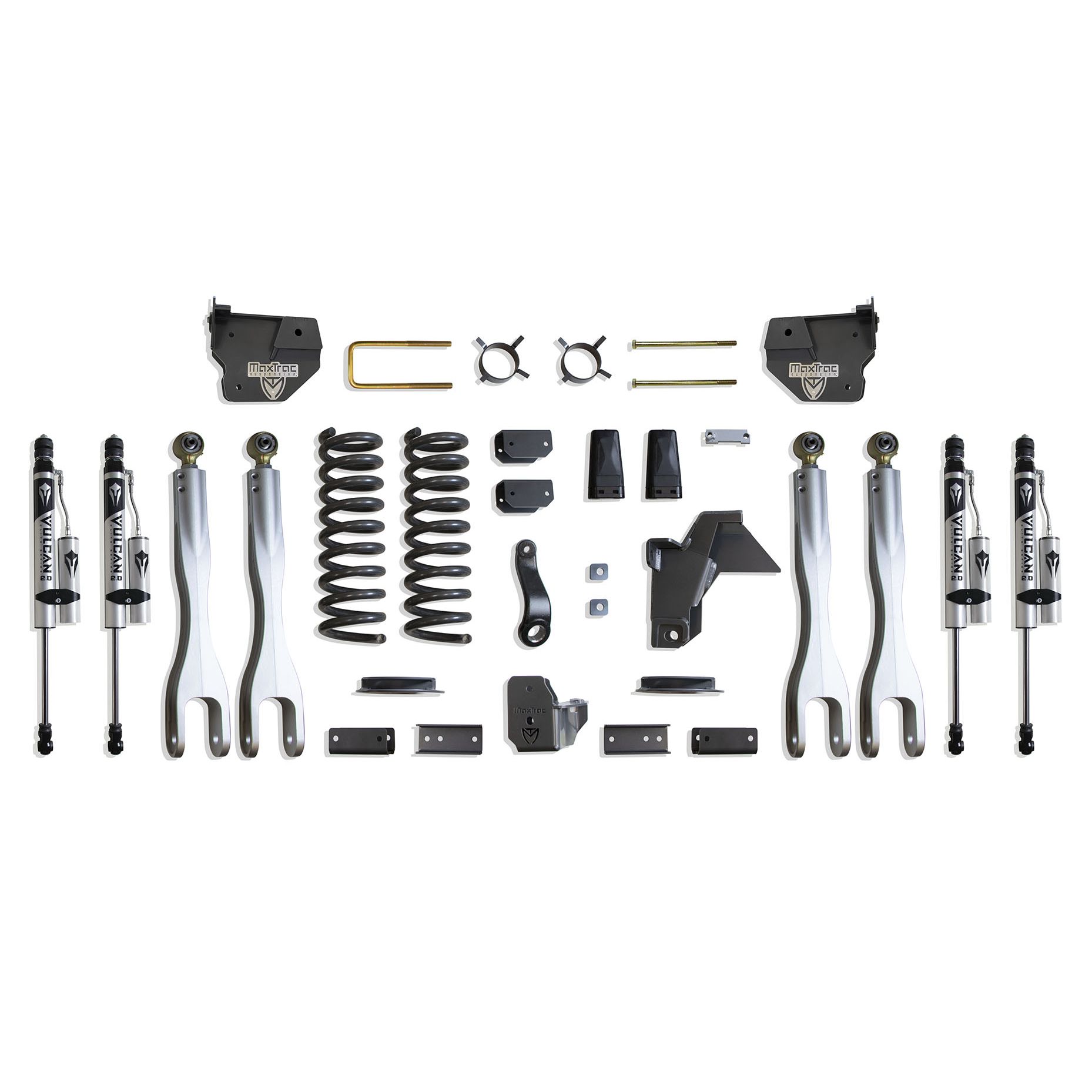 MAX TRAC SUSPENSION'S KIT# K947441VRLA IS A COMPLETE 4" LIFT KIT INCLUDING DIESEL COILS, FORGED ALUMINUM 4 LINKS, TRAC BAR BRACKET, PITMAN ARM, SWAY BAR BRACKETS, BUMP STOPS, REAR AIR BAG SPACERS, TRAC BAR BRACKET, SWAY BAR BRACKETS, BUMP STOP EXTENSIONS & FRONT/REAR VULCAN SERIES SHOCKS
