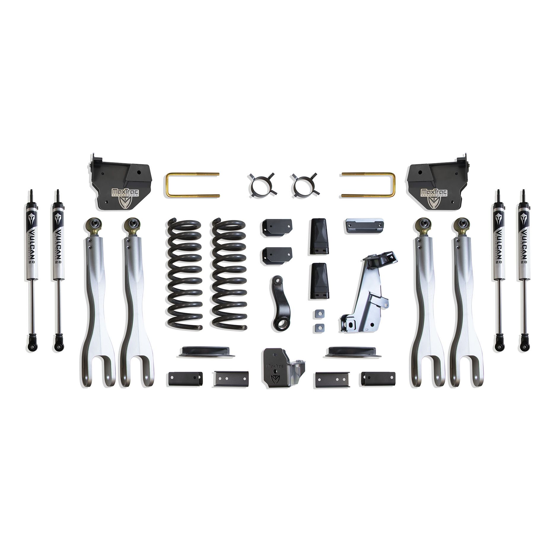 MAX TRAC SUSPENSION'S KIT# K947241VLA IS A COMPLETE 4" LIFT KIT INCLUDING DIESEL COILS, FORGED ALUMINUM 4 LINKS, TRAC BAR BRACKET, PITMAN ARM, SWAY BAR BRACKETS, BUMP STOPS, REAR AIR BAG SPACERS, TRAC BAR BRACKET, SWAY BAR BRACKETS, BUMP STOP EXTENSIONS & FRONT/REAR VULCAN SERIES SHOCKS