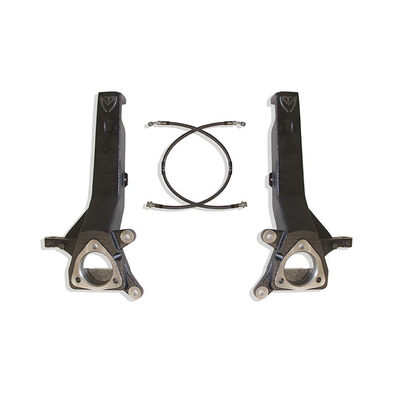 MAX TRAC SUSPENSION'S PART# 705340 IS A PAIR OF 4" LIFT SPINDLES W/ EXTENDED BRAKE LINES MADE FROM DUCTILE STEEL & E-COATED BLACK