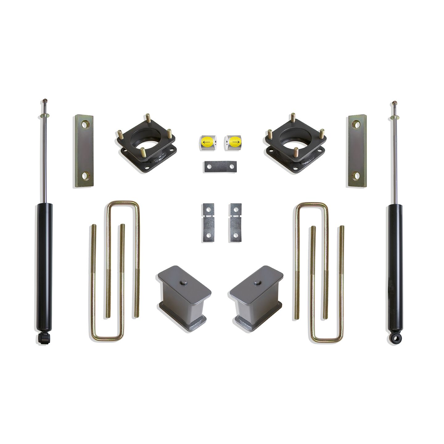 MAX TRAC SUSPENSION'S PART# 906740 IS A 4" REAR BOX KIT INCLUDING 2.5" LIFT STRUT SPACERS, 4" LIFT BLOCKS, U-BOLTS, CARRIER BEARING SPACER W/ REAR BRAKELINE BRACKETS & A PAIR OF MAX TRAC REAR SHOCKS