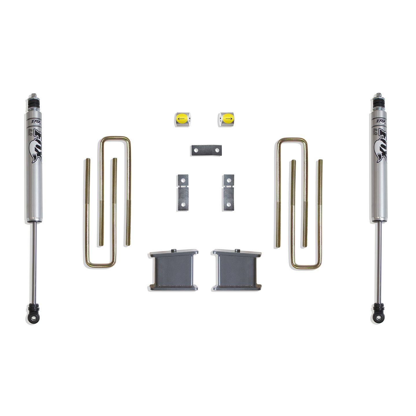 MAX TRAC SUSPENSION'S PART# 906740F IS A BOX KIT INCLUDING 4" LIFT BLOCKS, U-BOLTS, CARRIER BEARING SPACER & A PAIR OF FOX 2.0 PERFORMANCE SERIES REAR SHOCKS